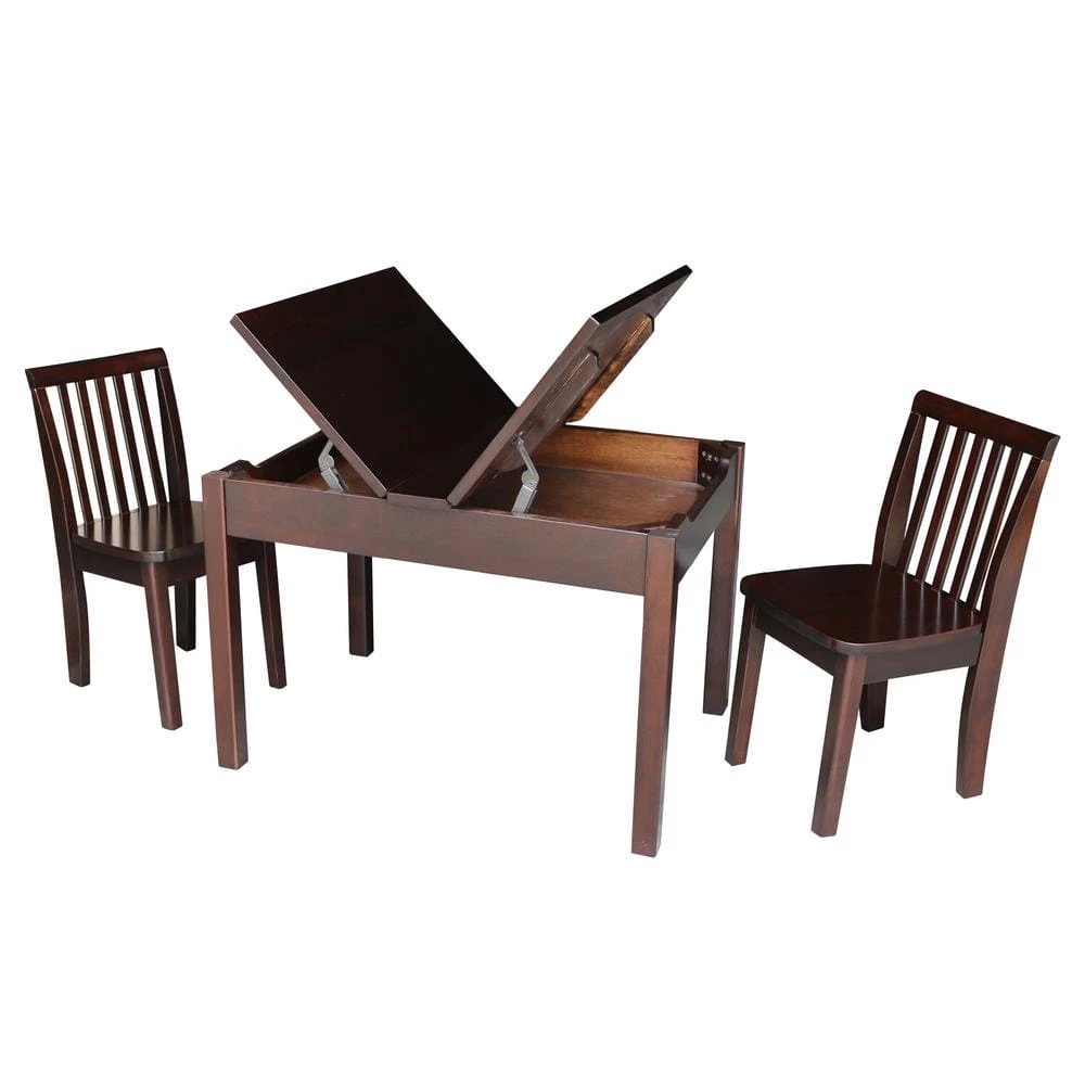 This child’s table and chair set provides the perfect place for your little ones to eat, play and create. The extra storage space inside the table top is awesome for storing crayons, crafts, games. The safety hinges allows each side of the top to easily lift up and down for easy access. Crafted from 100% solid hardwoods for timeless durability. Currently offered ready to finish or in two pre-finished color choices. Unfinished option allows you to choose your own color to paint and personalize.