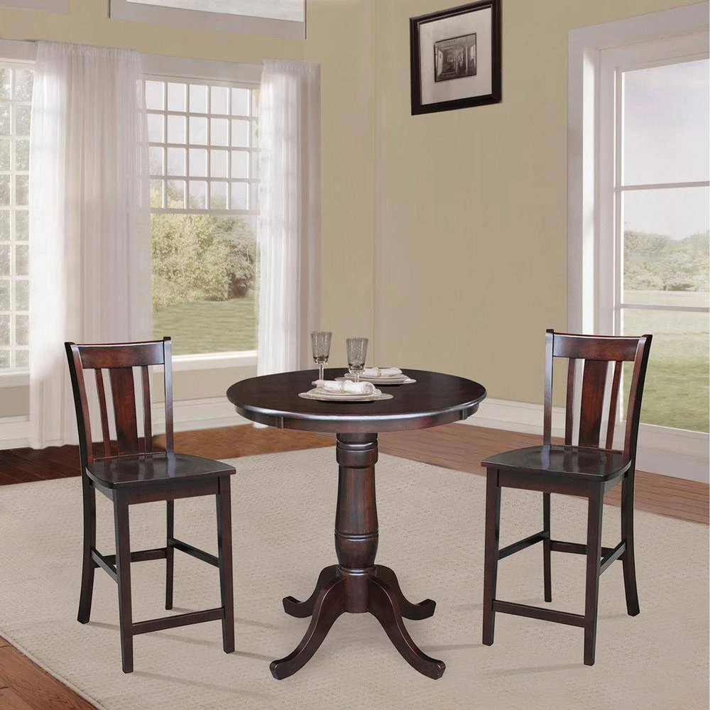 This beautiful solid wood dining set from International Concepts is a great addition to your home. Always 100% solid hardwood, IC products are sturdy, durable, and a great value. This set has been finished with premium paints and stains and finished with a protective topcoat. International Concepts has been manufacturing quality solid wood home furnishings since 1979. With 30+ years of experience they stand behind their products. Buy this beautiful dining set today.
