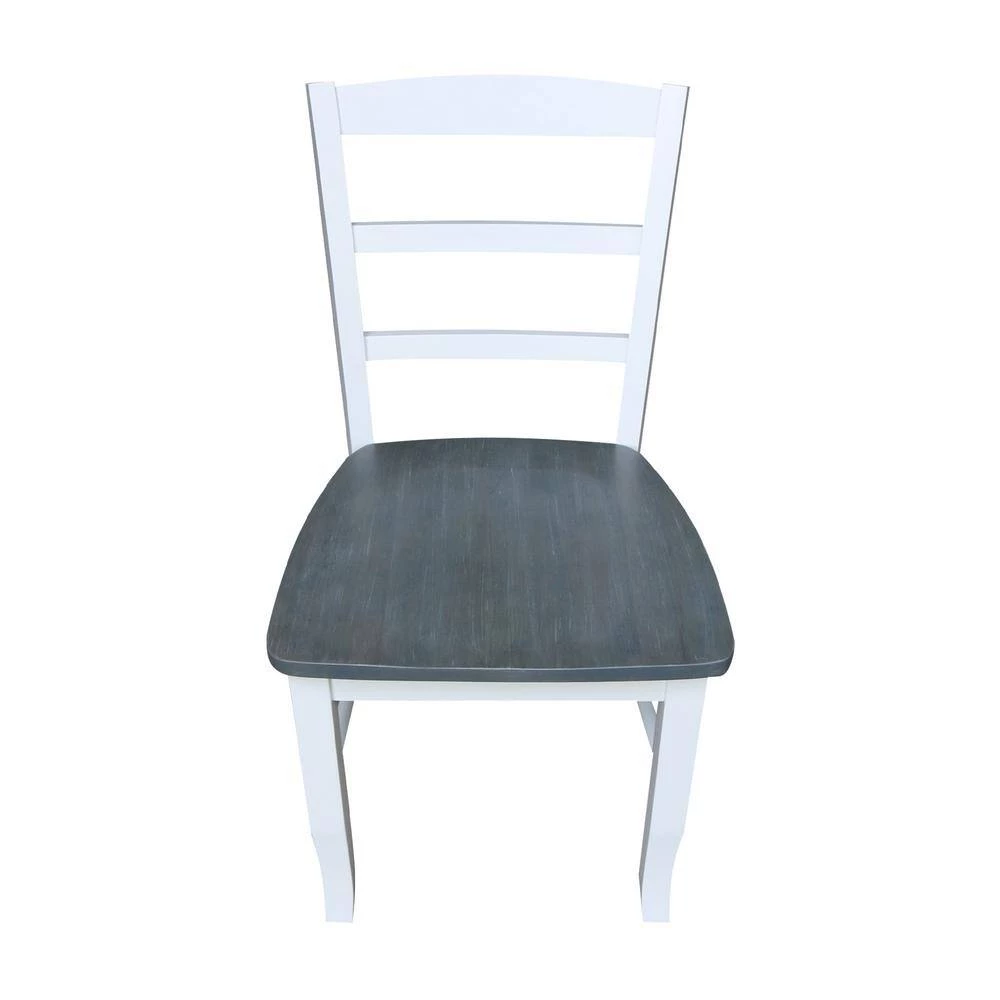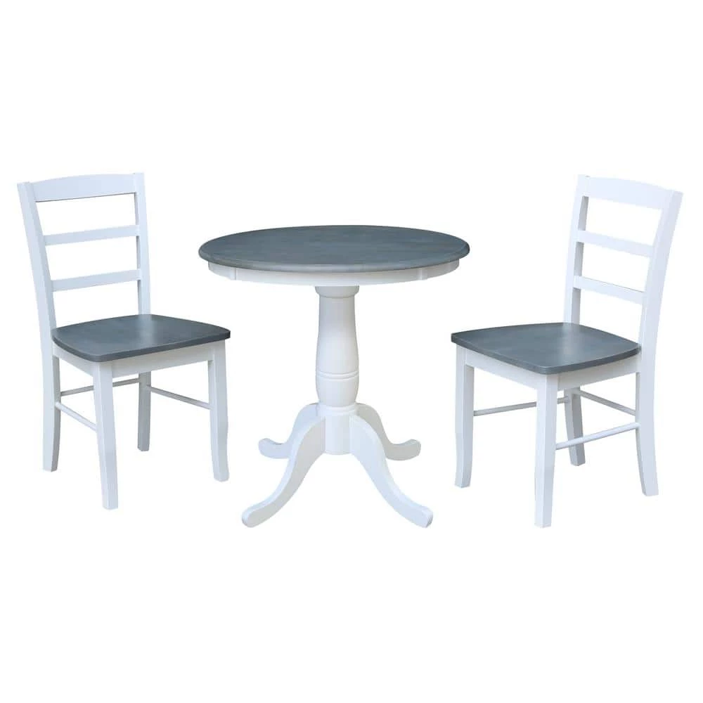 This dining set is beautifully finished with a brushed gray top and bright white apron and pedestal. Matching chairs with white frame and gray seat. This dining set is built to last with the quality, value and style International Concepts is known for. International Concepts has been building quality solid wood home furnishings since 1982. We hope you will enjoy your dining set for many years.