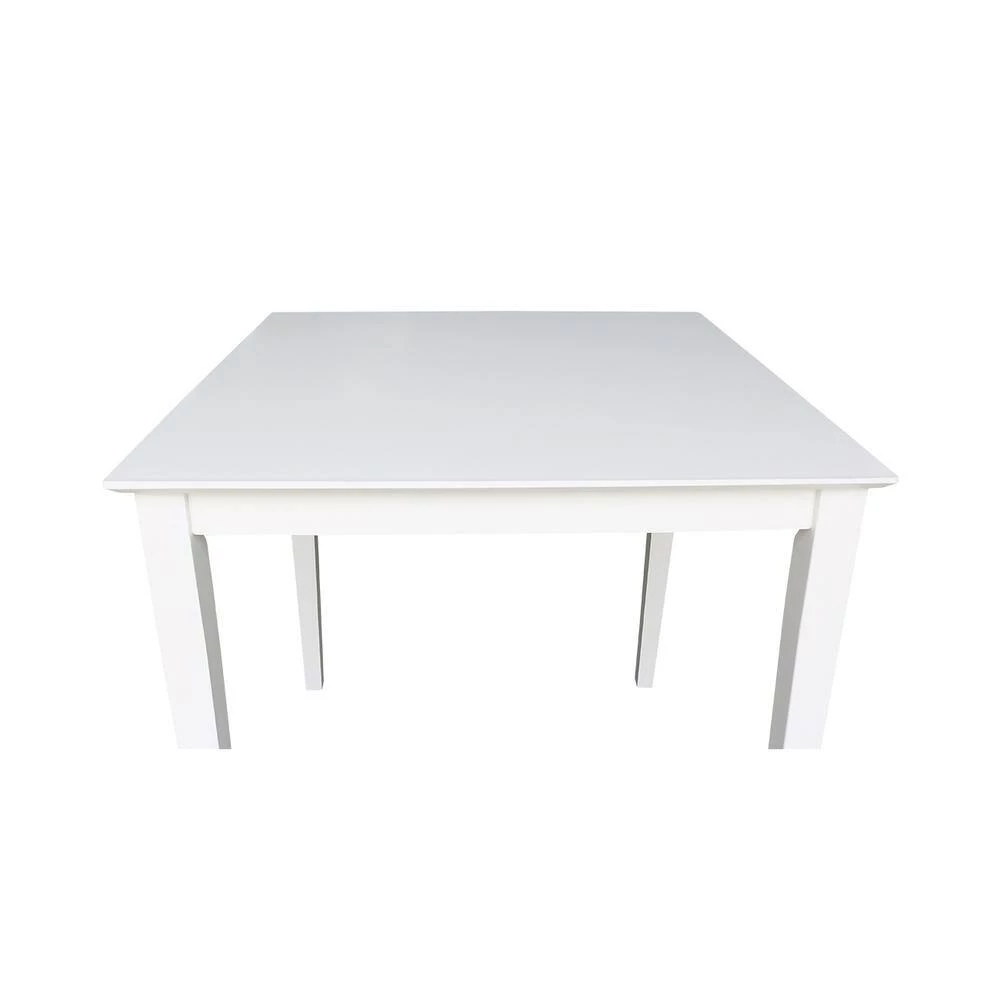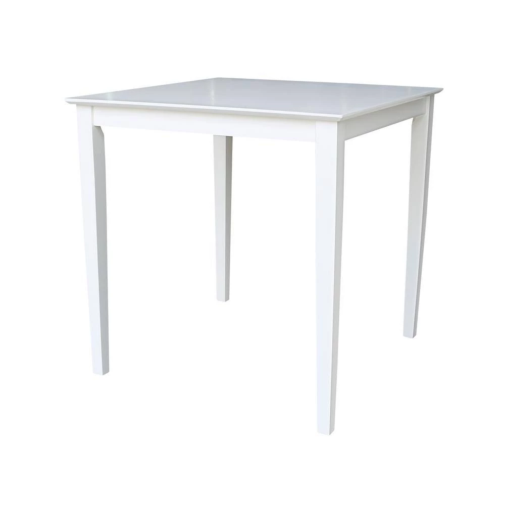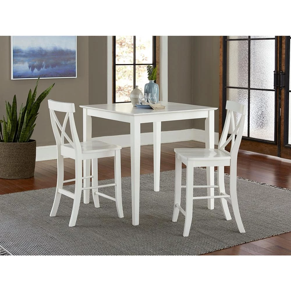 This solid wood 3-piece white dining table set from International Concepts is perfect for small spaces whether it be an eat in kitchen or your new apartment. International Concepts has been crafting fine solid wood home furnishings since 1979 and stands behind their products. Most tables today are made from particle board and break easily. All International Concepts products are 100% solid hardwood, beautiful and built to last. Our furniture is finished with a precatalyzed top coat to give the finish extra durability as well as making it easy to clean!