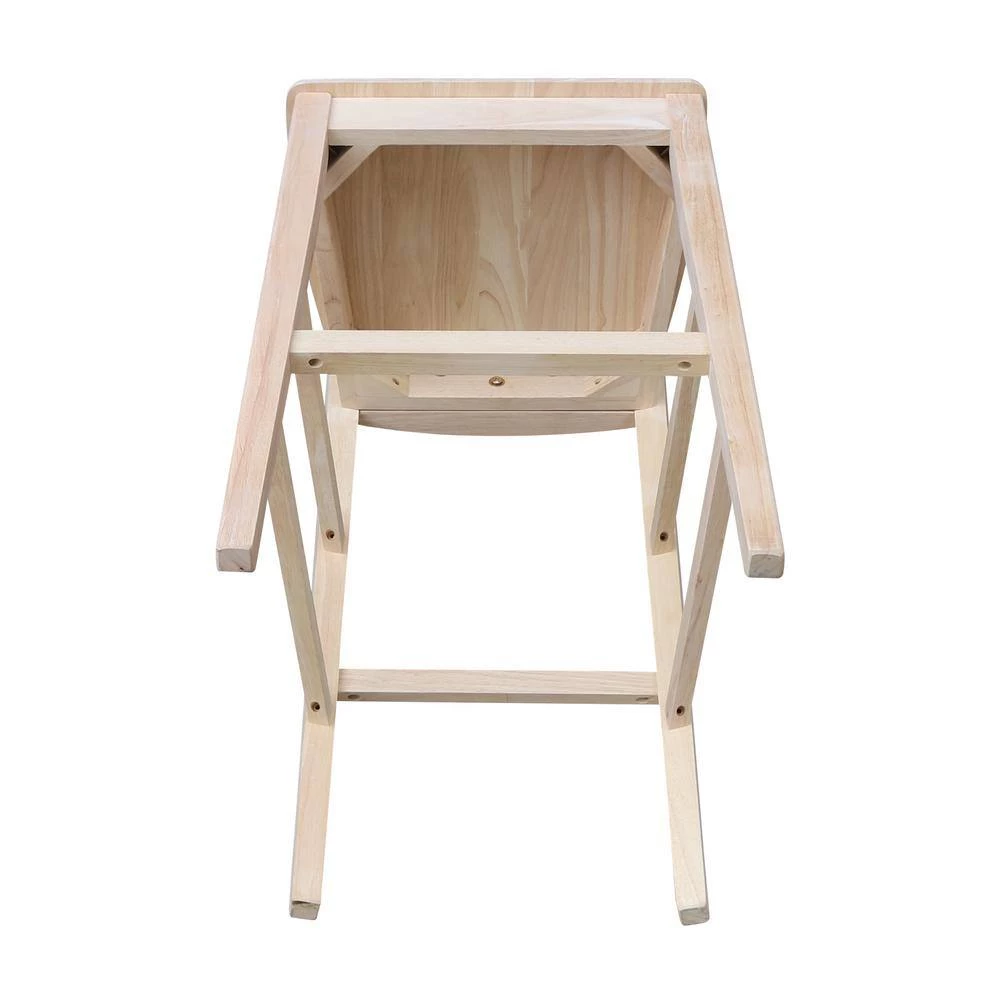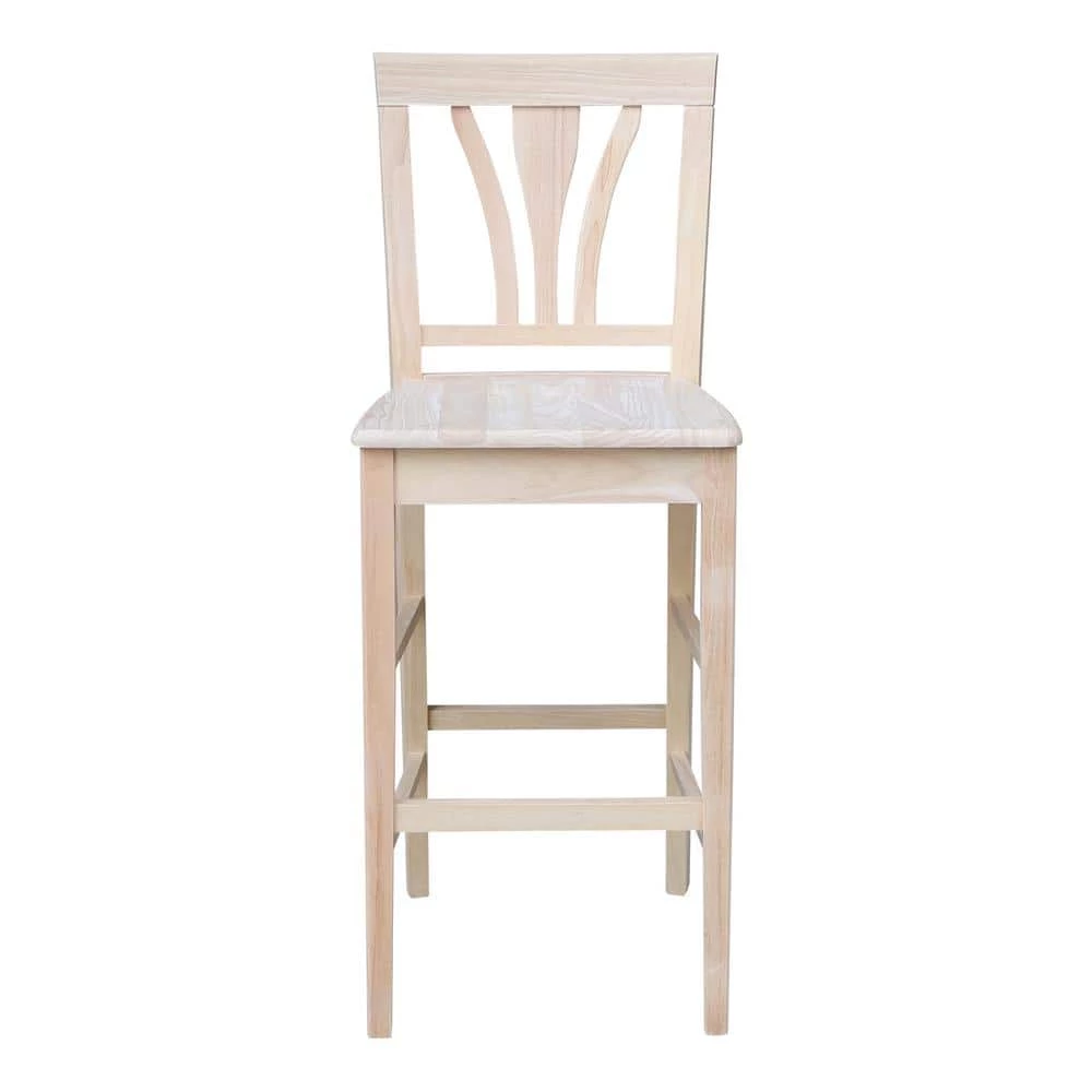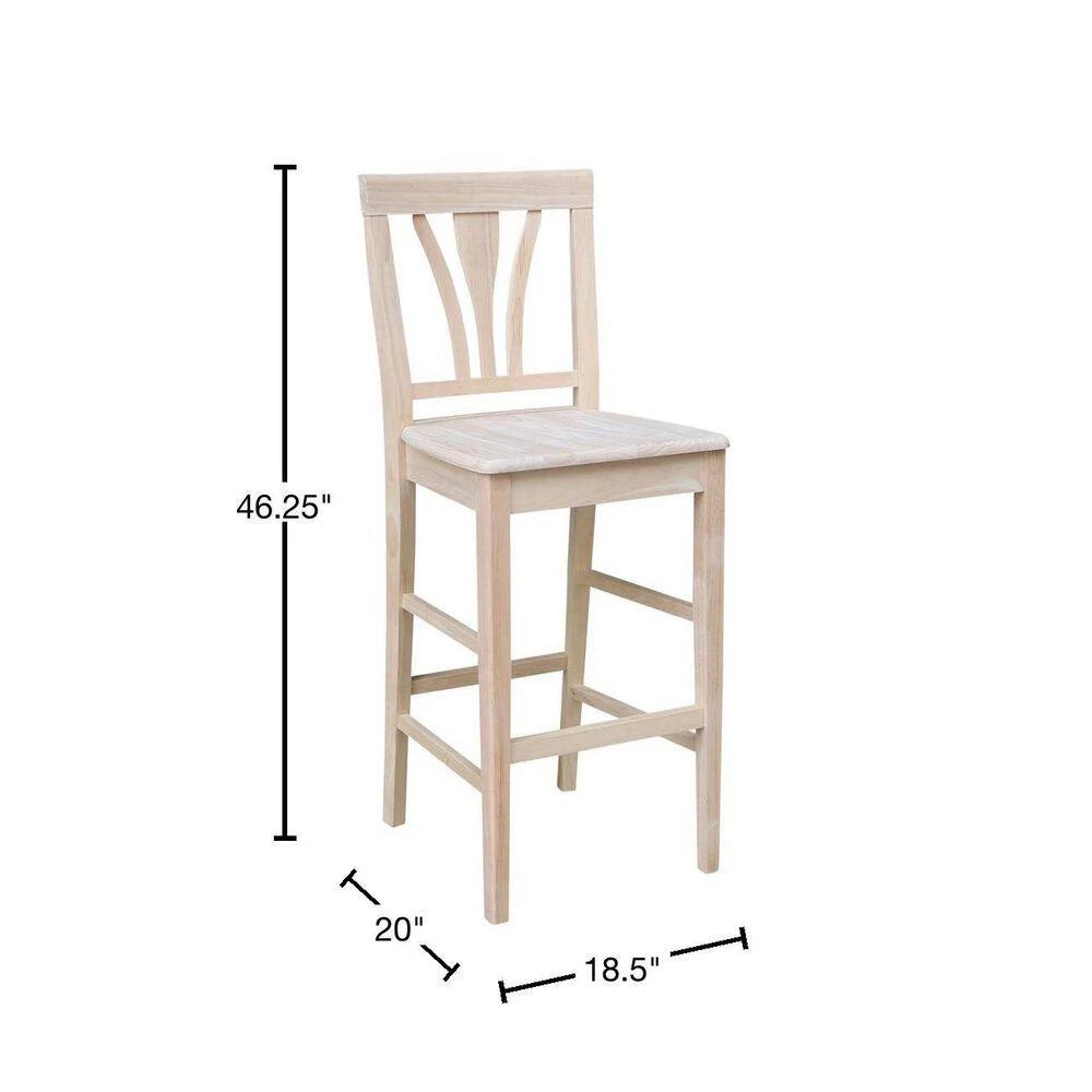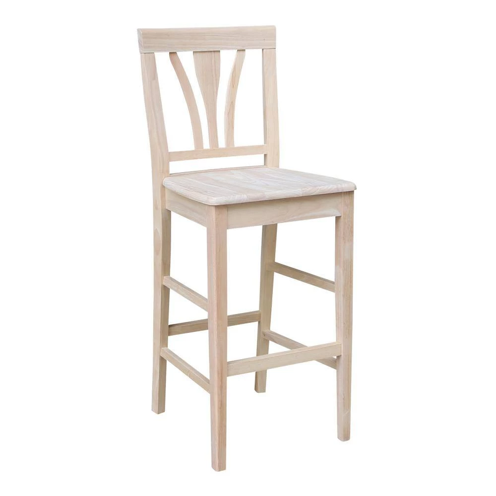 Count on the International Concepts Dining Essentials Bar Stool to spruce up any seating area. This stool has a full back, which provides total comfort. It features a classic style for a look that will pair well with your existing home design. It is designed without arms, so you can tuck it under the counter or bar. Featuring a wooden construction, this stool is easy to maintain and creates a homey, visually pleasing look. It features a foot rest for added support and comfort. This stool is eco-friendly, making it a smarter choice for your home and the environment. It has an easy-to-assemble design for additional convenience.