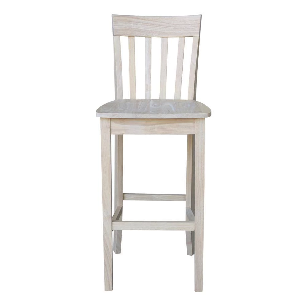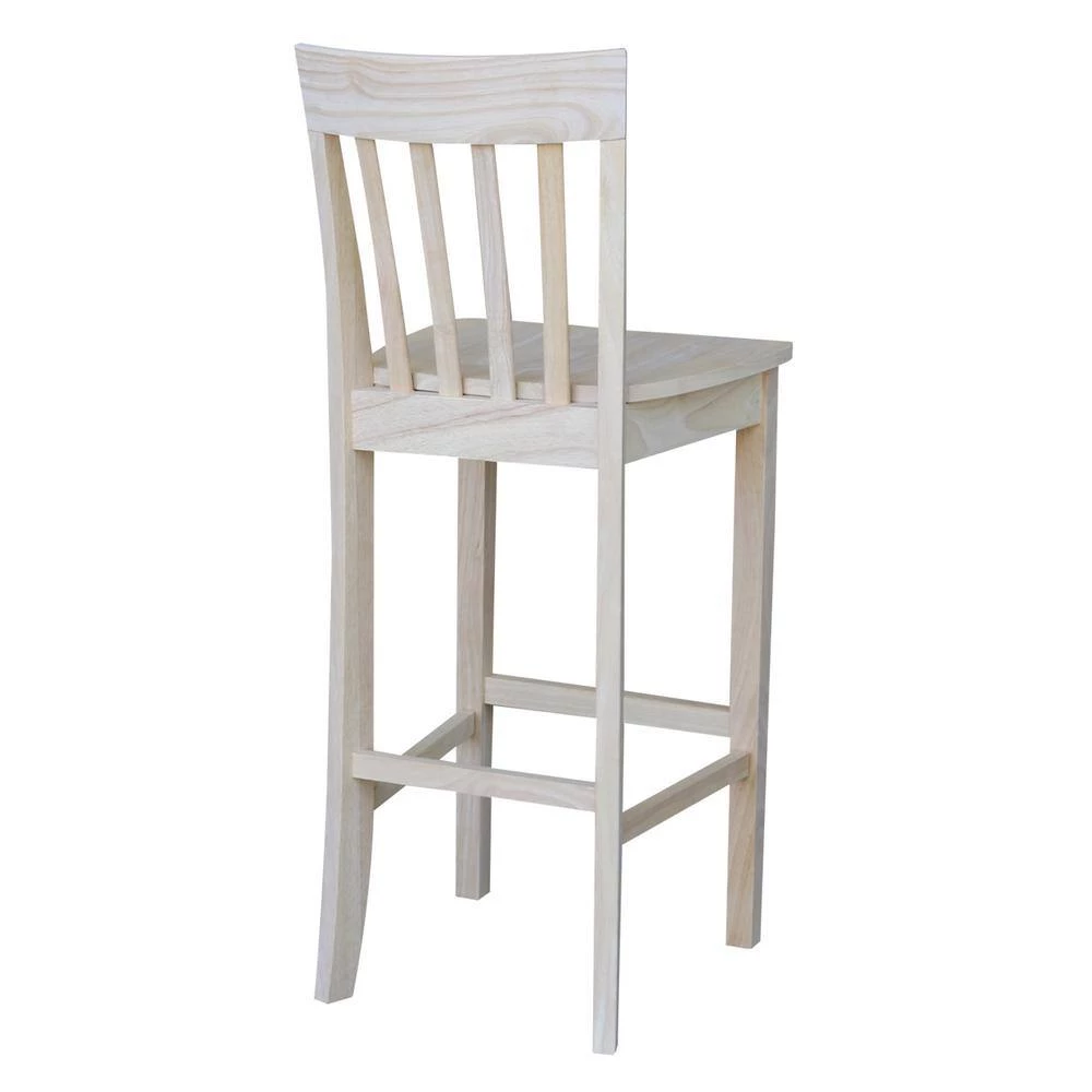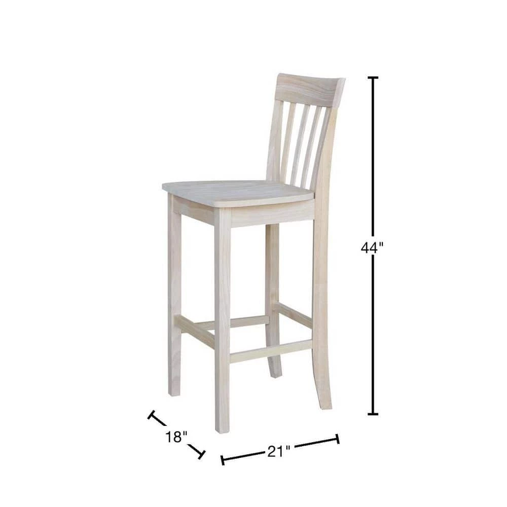 The International Concepts Dining Essentials Bar Stool will be the perfect accent to your kitchen. This stool has a full back, so you can enjoy the comfortable feel of a dining chair yet with the appearance of a stool. It features an armless design, so you can push it under the table or bar. This stool features a classic style, providing you with a timeless piece of furniture. Featuring a wooden seat and frame, it is perfect for adding a touch of finesse to any home. It has a foot rest for enhanced comfort and support. This bar stool is eco-friendly, making it preferable for the environment and your home. It is easy to assemble for added convenience.