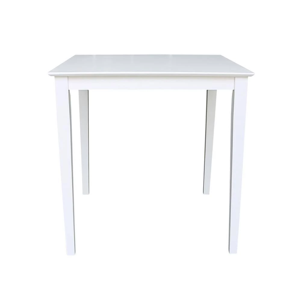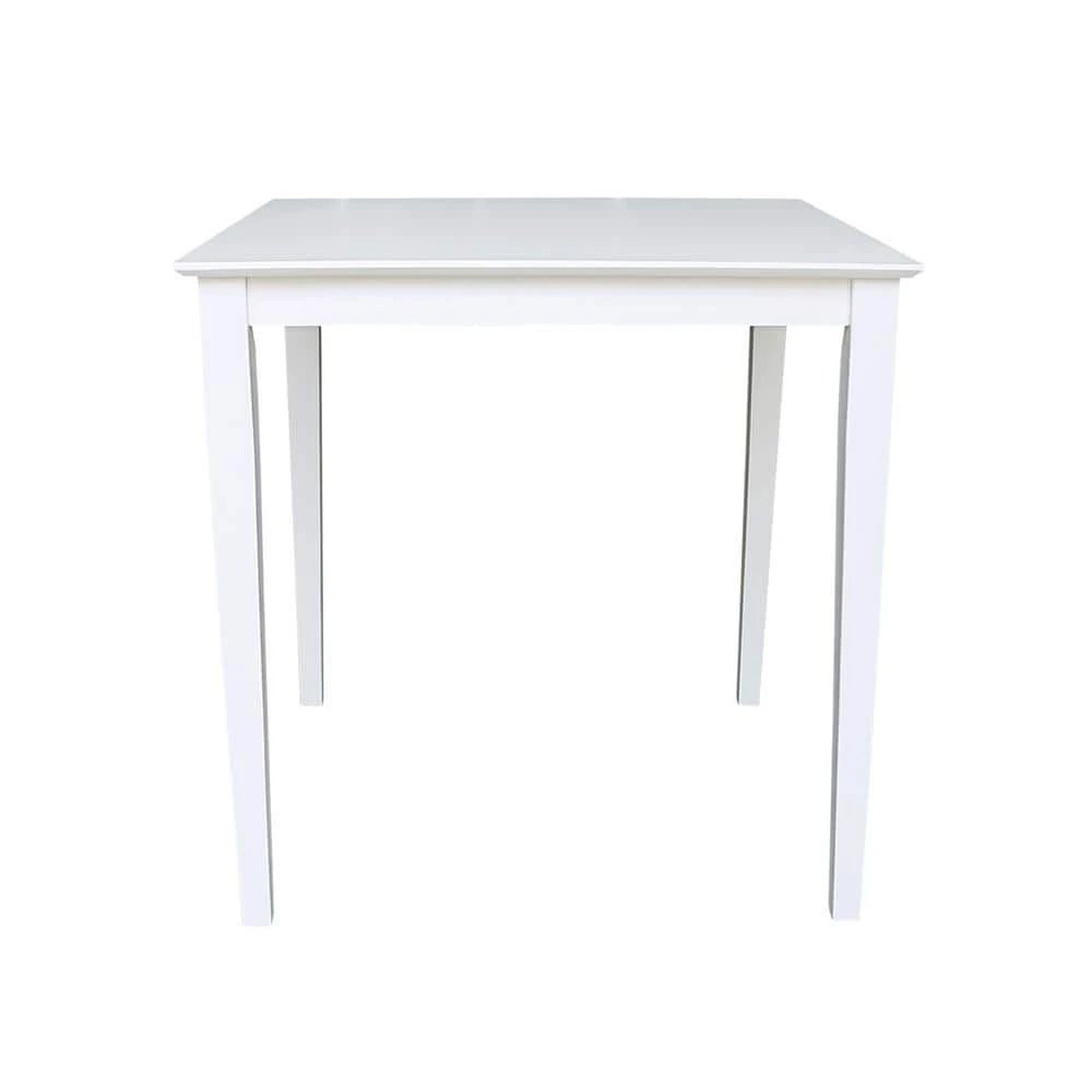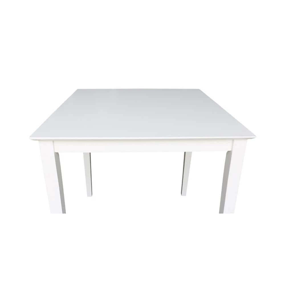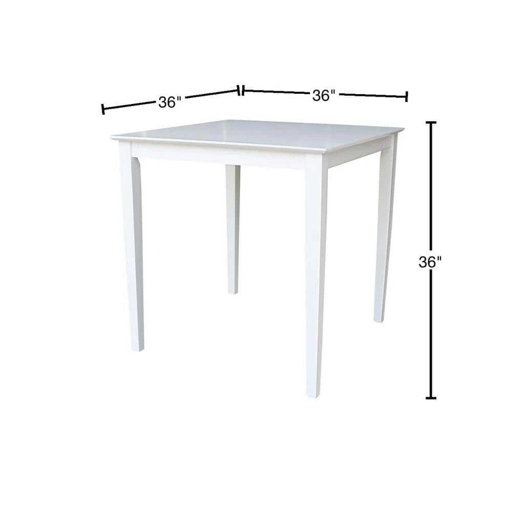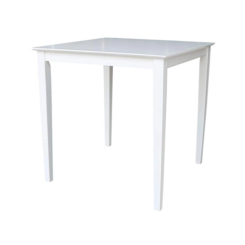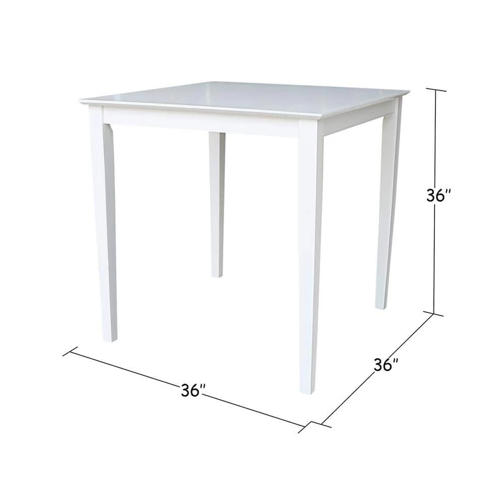 This square shaker table is great for small spaces. This International Concepts table is offered ready to finish or in 5 pre-finished color choices. Featuring a solid wood butcher block style top that will hold up to your dining needs.