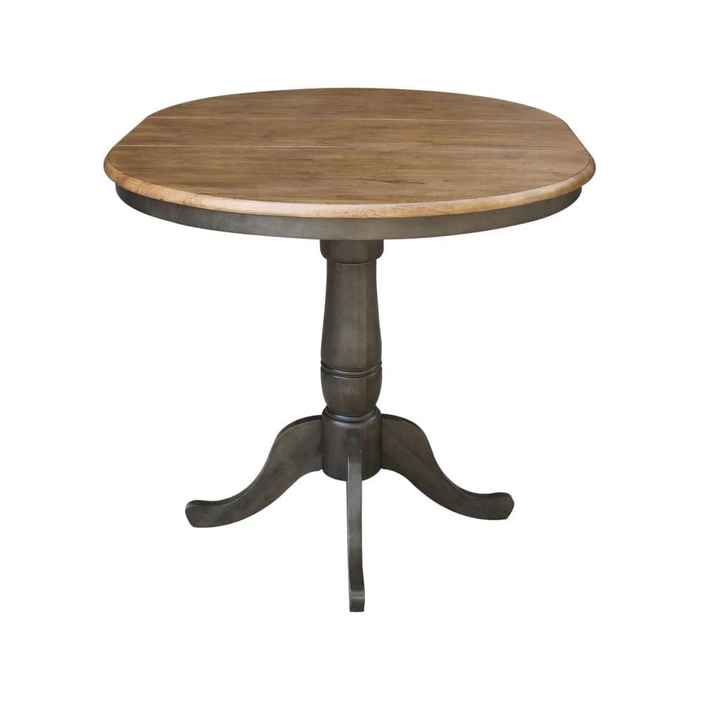 This beautiful 36 in. x 48 in. solid wood hickory coal pedestal table from International Concepts is perfect for seating 4-people comfortably. The solid hardwood top features a 12 in. butterfly leaf to expand table from 36 in. round to 48 in. x 36 in. oval. The steel guides and quality craftsmanship make it easy to pop the leaf in and out to suit your needs. The table comes in a variety of premium finishes or you can also buy it unfinished. Look for coordinating stools from International Concepts Dining Essentials collection. Trust us with your dining needs as International Concepts has been manufacturing quality solid wood home furnishings since 1979.
