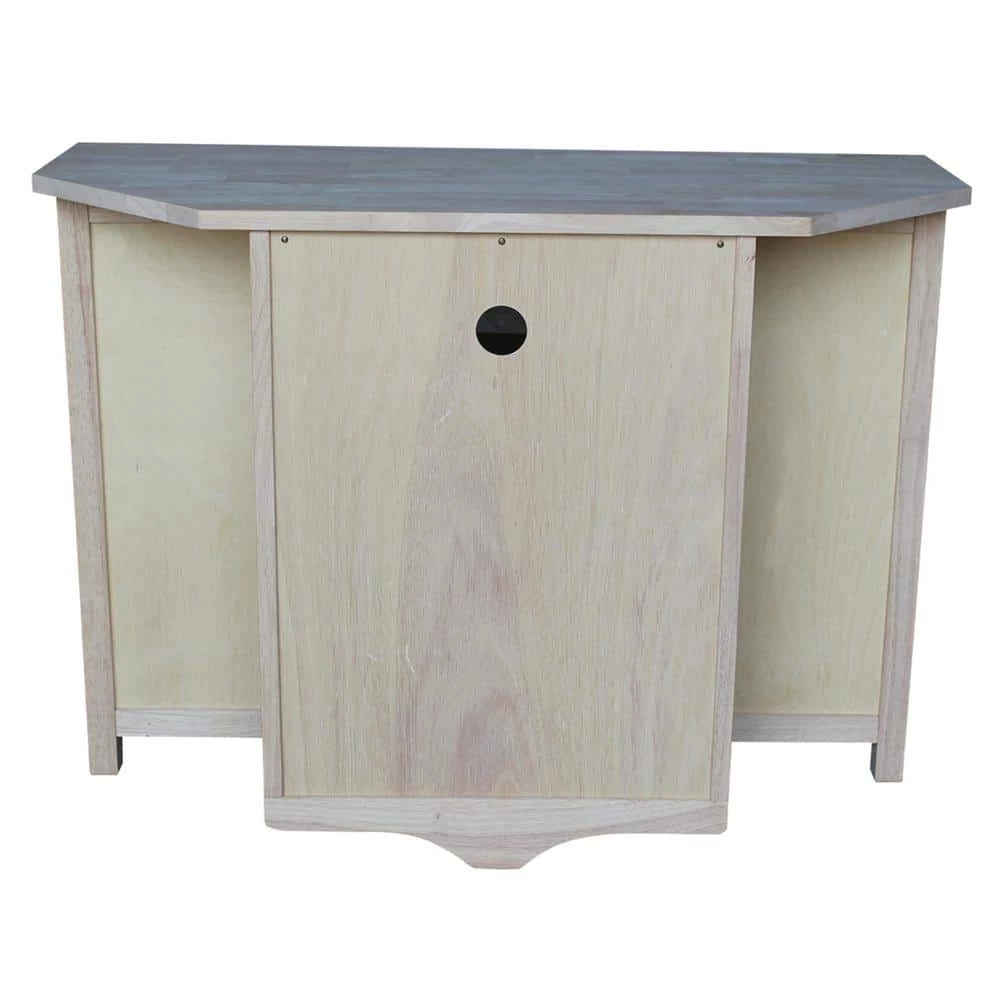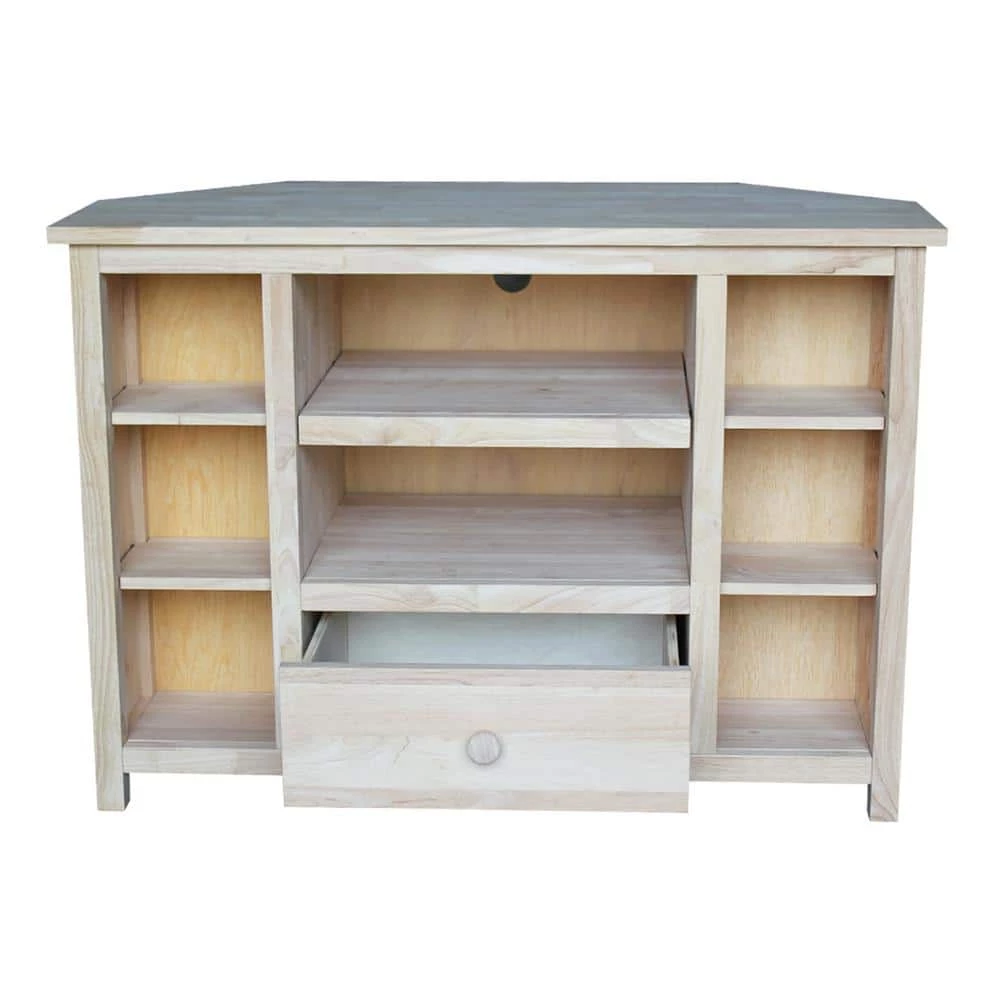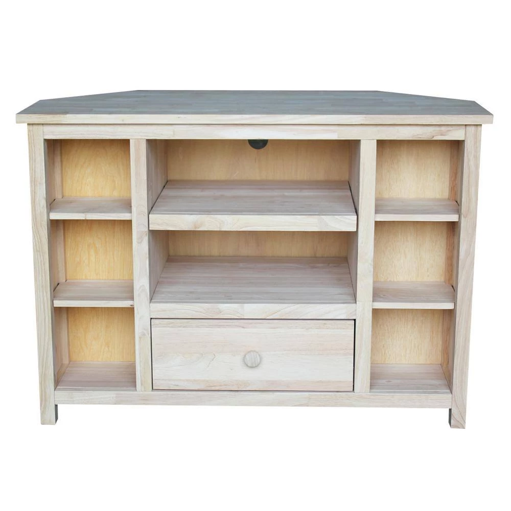 This large corner TV stand has plenty of room to hold all your media needs. Constructed from sustainably sourced hardwood to be sturdy and solid and stand the test of time. Unfinished and ready for you to personalize to suit your needs.