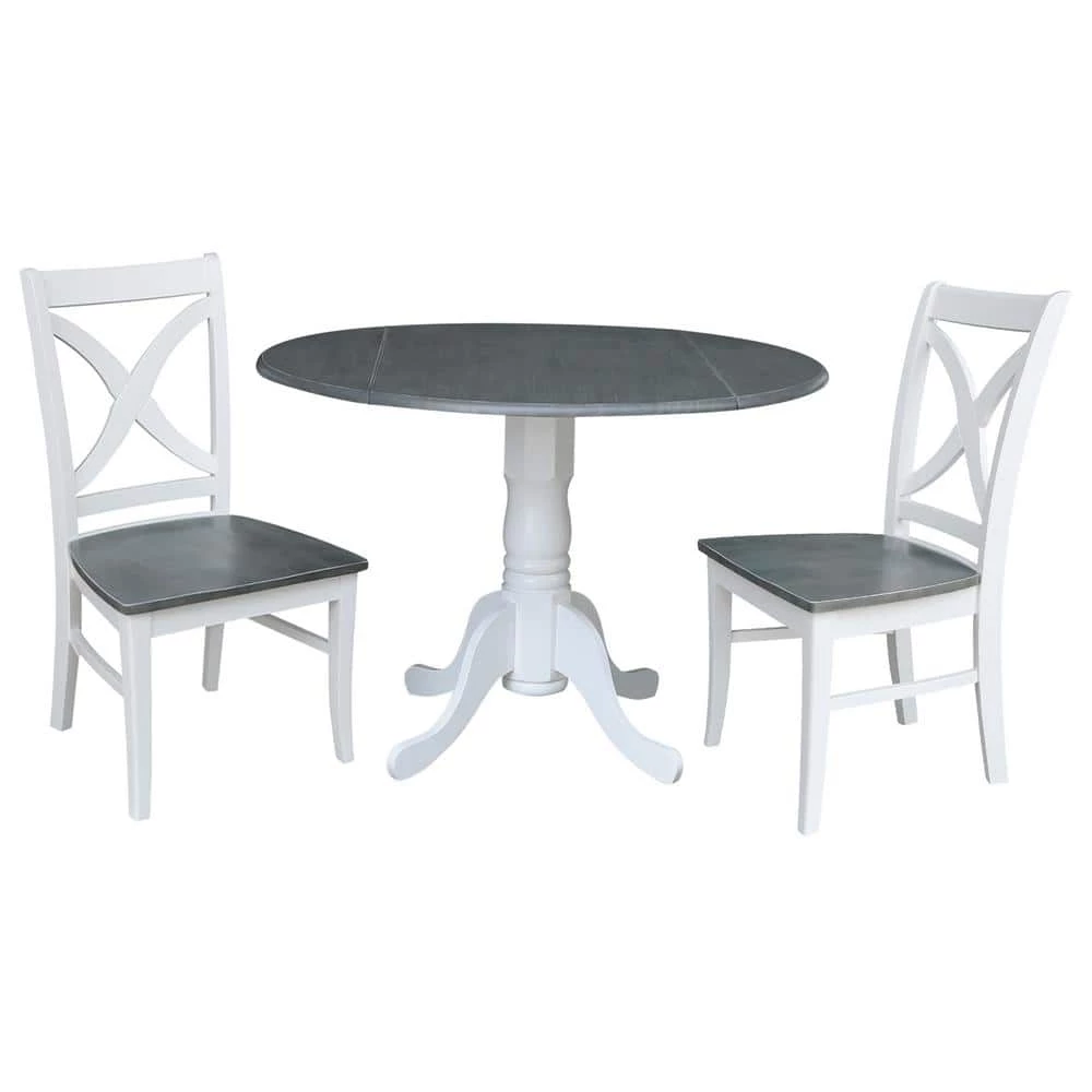 - 3-piece white heather gray set, consisting of 1-table and 2-RTA chairs, packed and shipped in 2-cartons