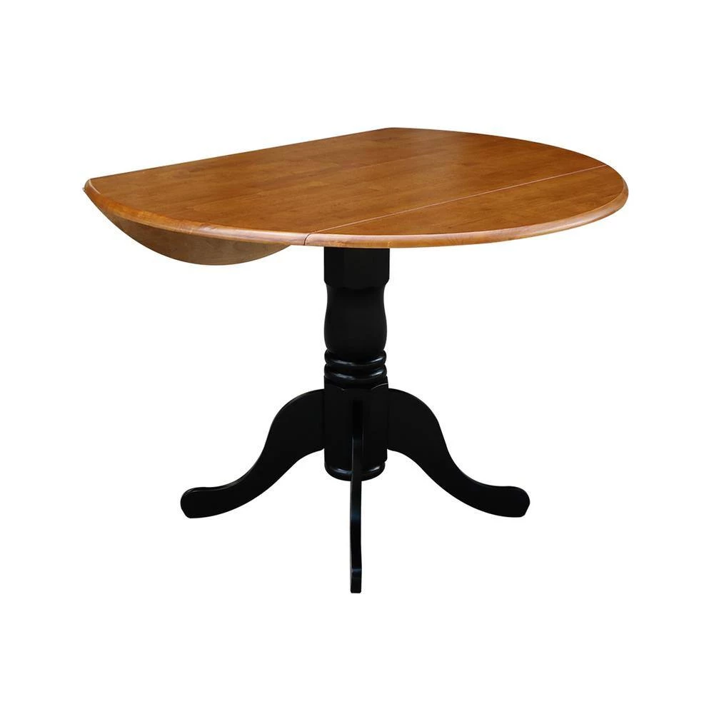 This 5-piece dining set from International Concepts is sure to please. The classic 42 in. drop-leaf pedestal table paired with 4 of our comfortable Emily chairs. You can also find the table and chairs sold seperately. A premium finish that protects your solid wood table and chair set adds to the value. Delivering the quality craftsmanship International Concepts is known for. International Concepts has been delivering style, value and quality solid wood home furnishings for over 35 years.