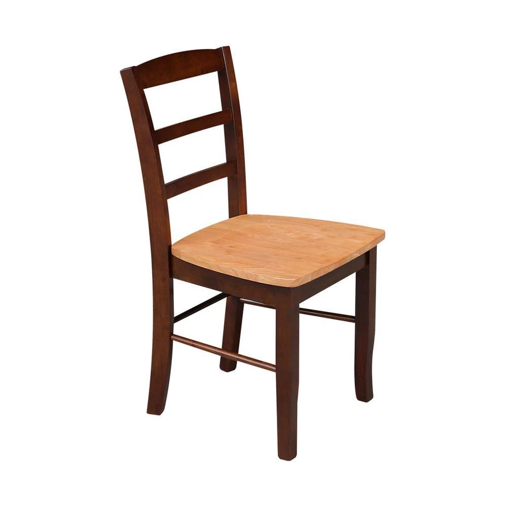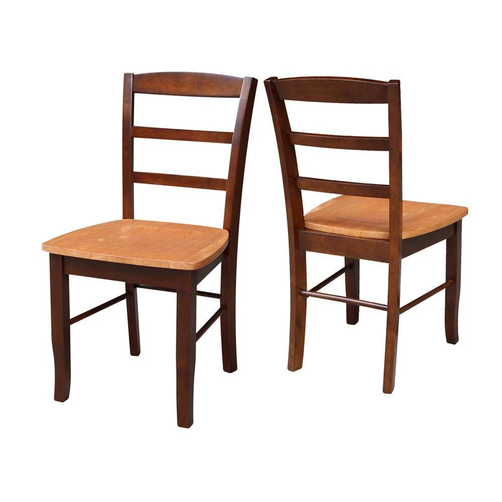 This classic 42 in. round dropleaf table is finished in a warm Espresso finish. The 5-piece set comes with four Madrid chairs which are comfortable updated ladderback cafe chairs. The set is all solid wood made from plantation grown rubberwood; an asian hardwood. International Concepts has been crafting fine solid wood home furnishings since 1982 and stands behind their products.
