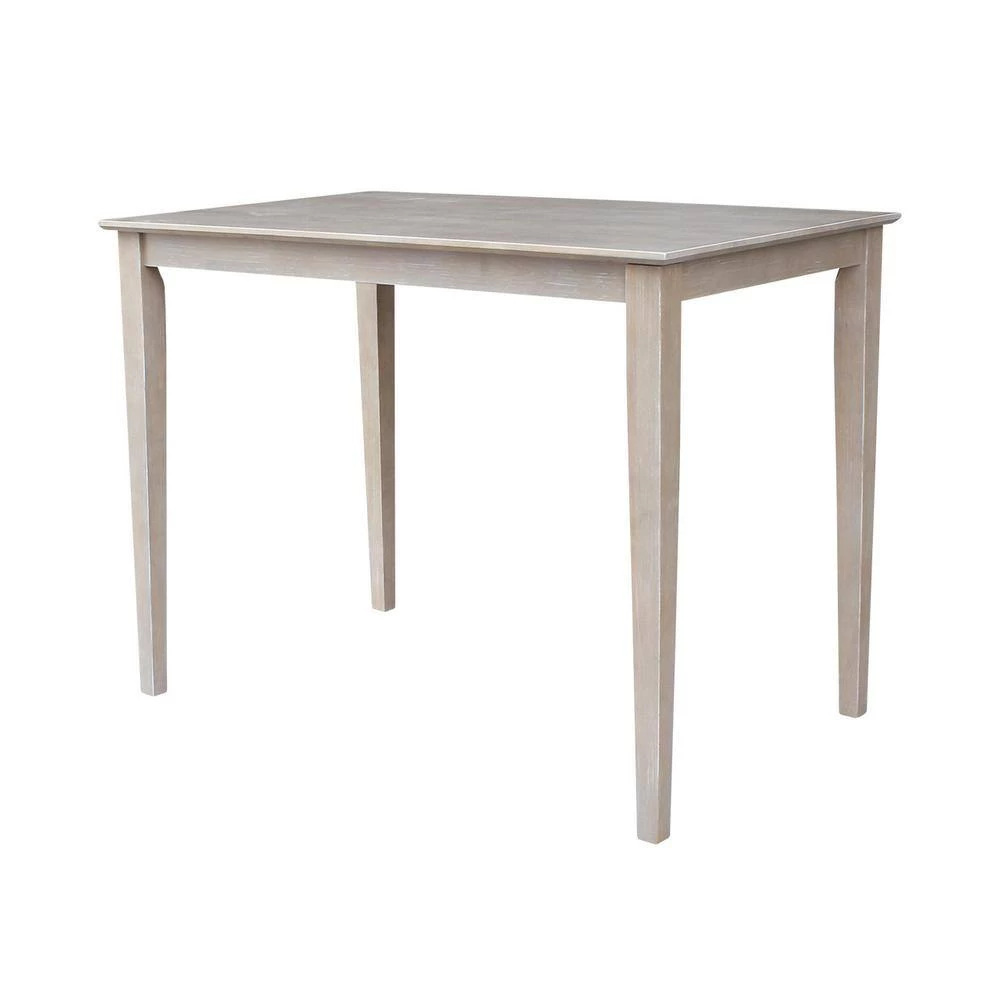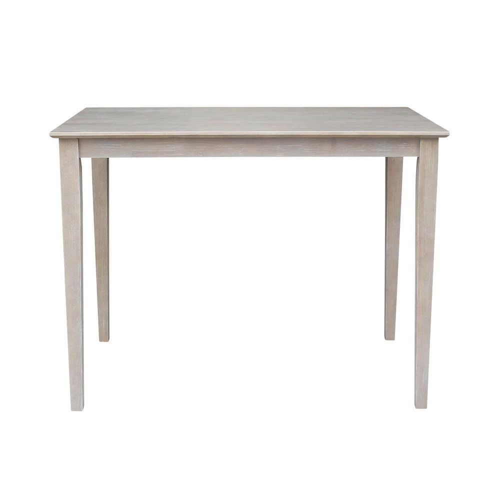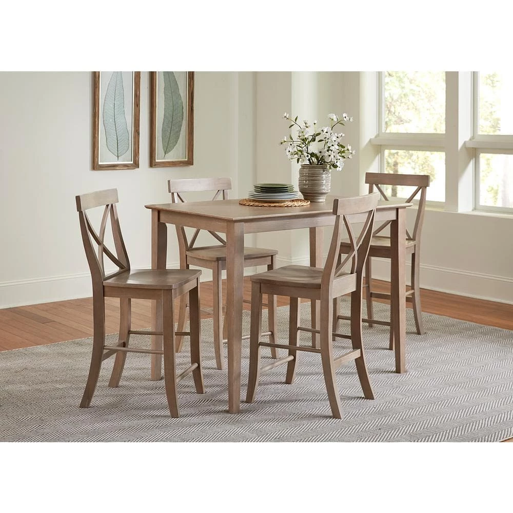 This solid wood 5-piece weathered taupe gray dining table set from International Concepts is perfect for small spaces whether it be an eat in kitchen or your new apartment. International Concepts has been crafting fine solid wood home furnishings since 1979 and stands behind their products. Most tables today are made from particle board and break easily. All International Concepts products are 100% solid hardwood, beautiful and built to last. Our furniture is finished with a precatalyzed top coat to give the finish extra durability as well as making it easy to clean!