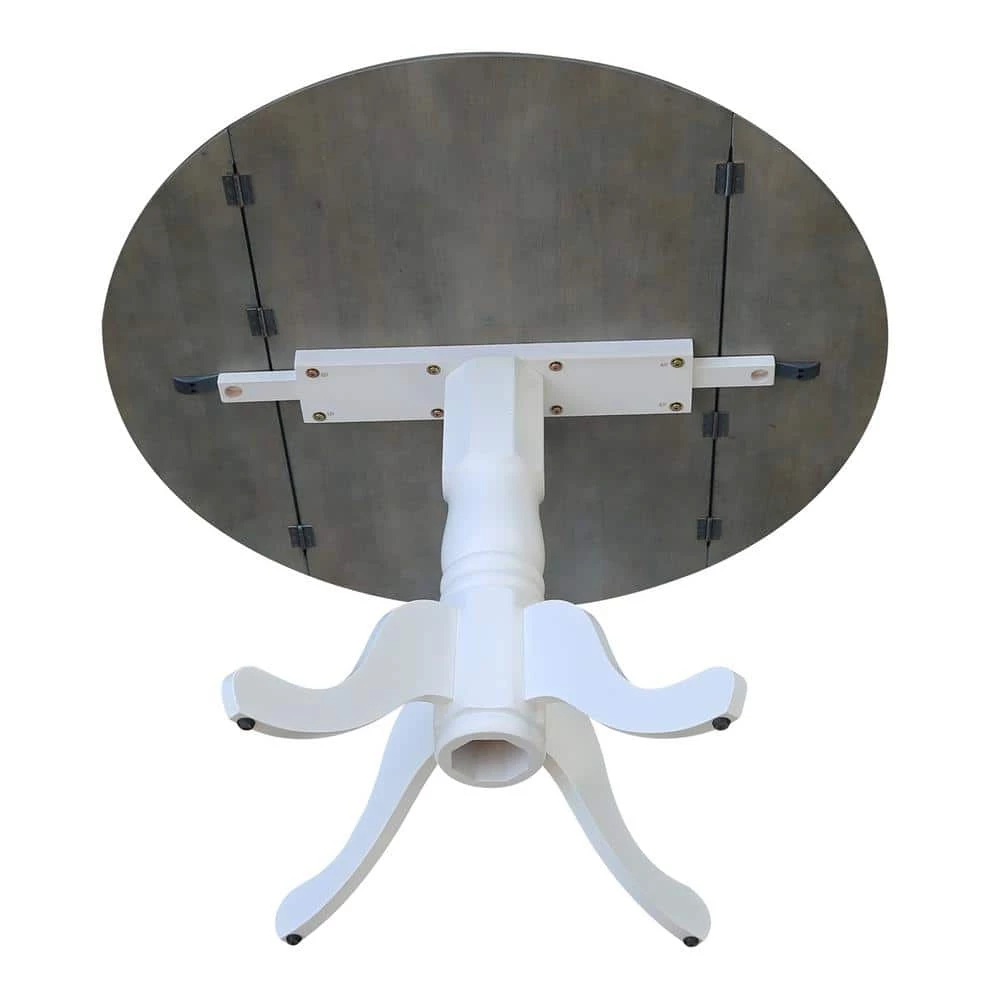 - Solid wood dual drop leaf table, each leaf is 9″, easy to assemble