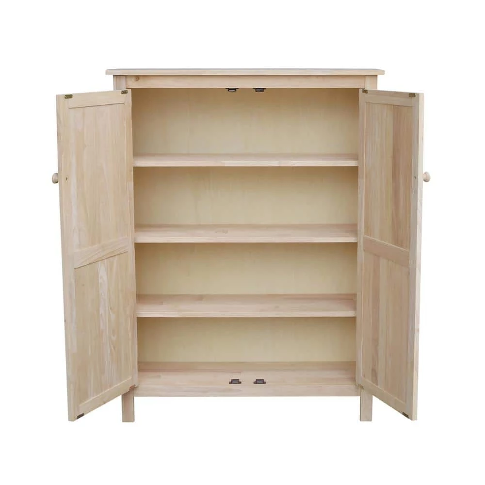 This cabinet has a ton of storage room and can be used in any room. Ready to finish you pick the color or simply add a clear coat. The classic style and durable solid wood of this cupboard is the perfect combo for years and years of functional use.