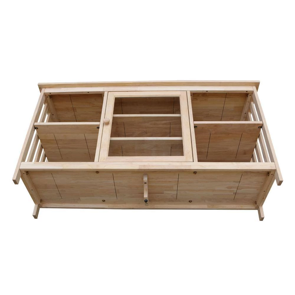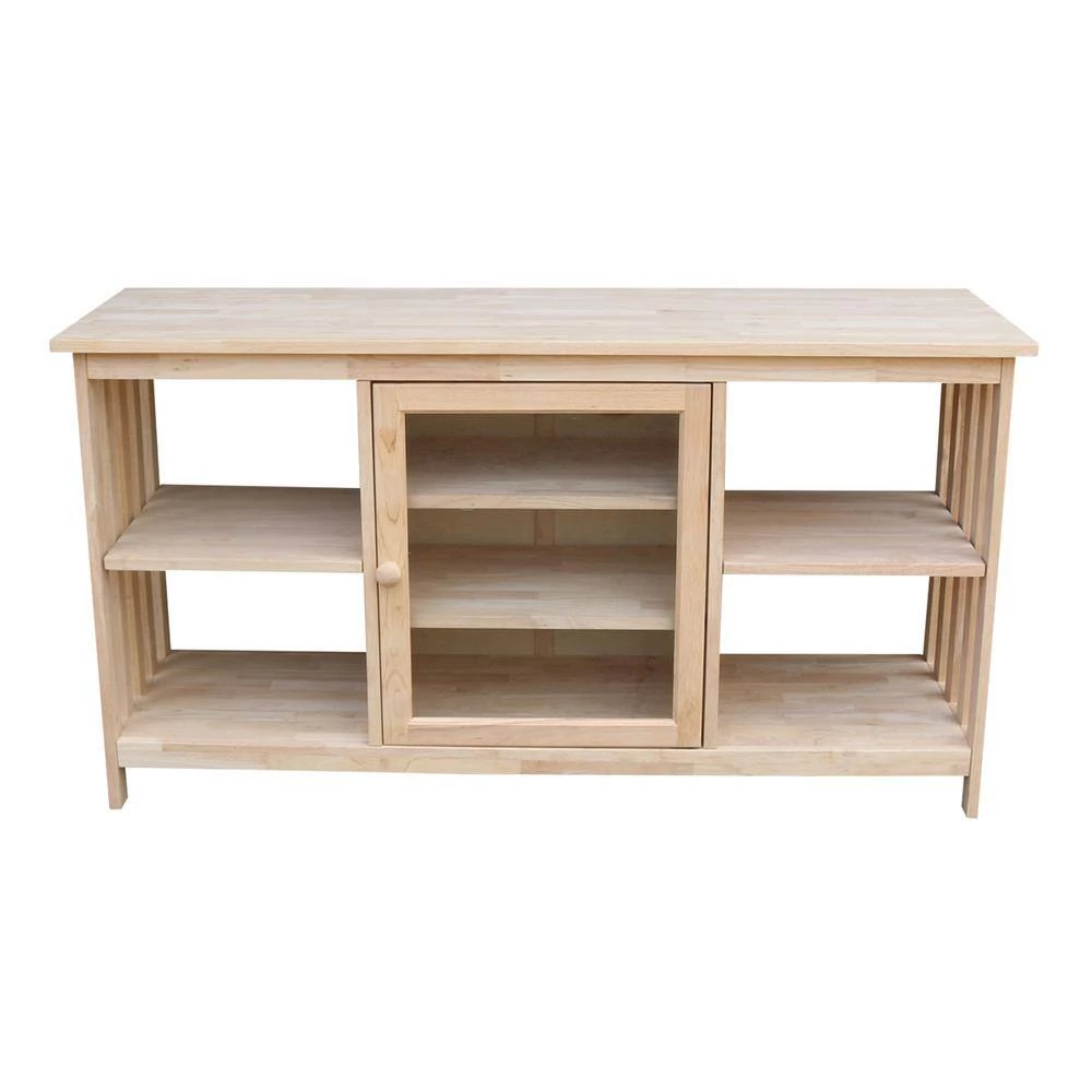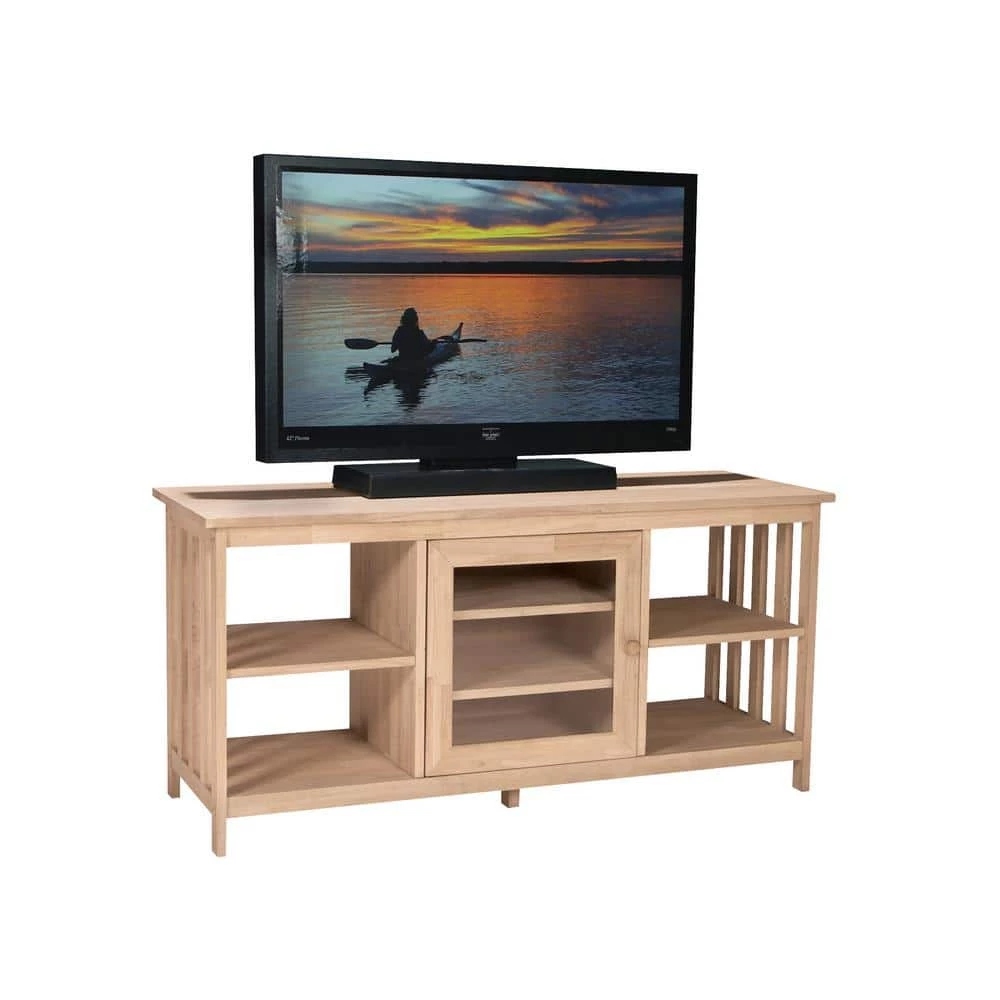 This large Mission style TV stand has plenty of room to hold all your media needs. Constructed from sustainably sourced hardwood to be sturdy and solid and stand the test of time. Unfinished and ready for you to personalize to suit your needs.