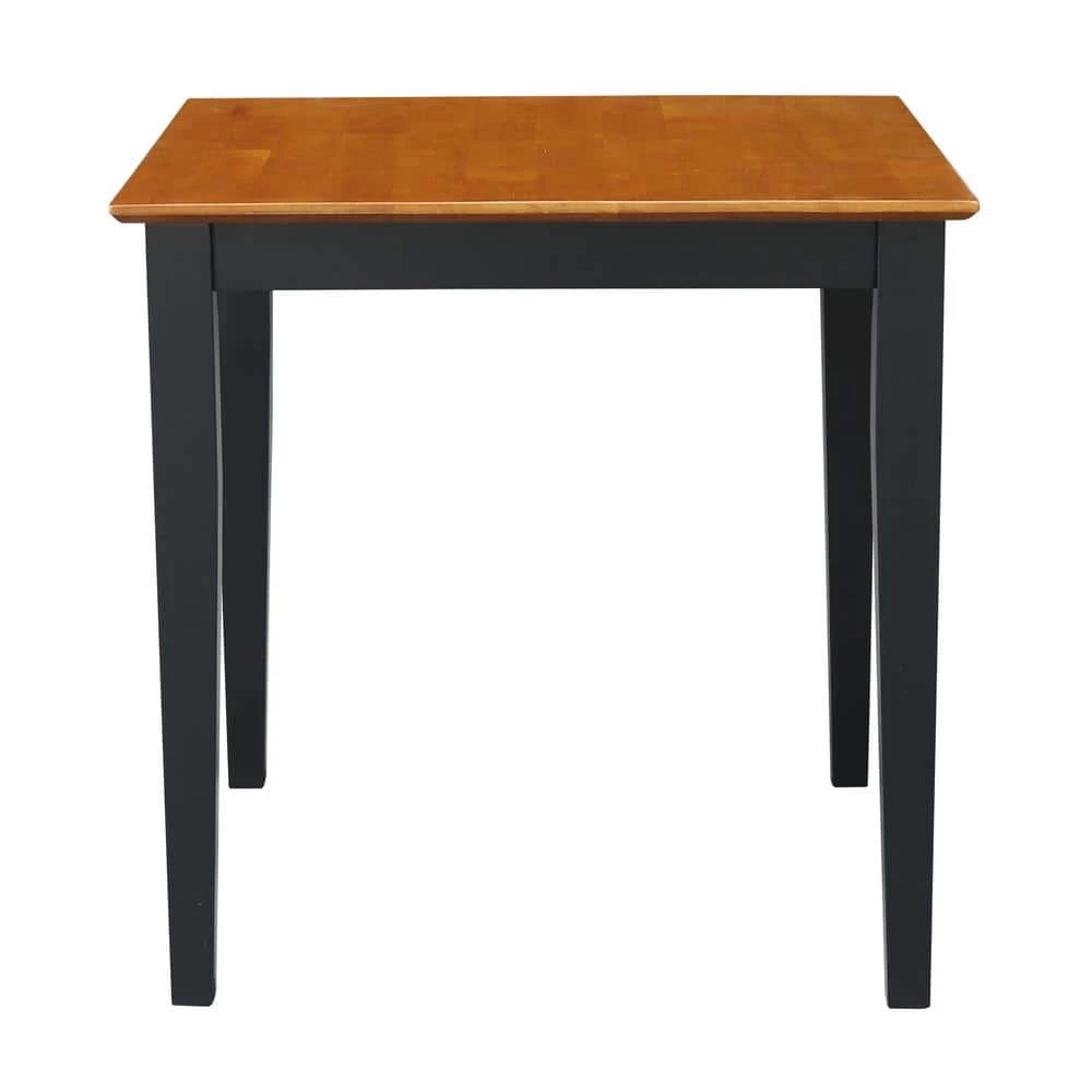 This square shaker table is great for small spaces. This International Concepts table is offered ready to finish or in five pre-finished color choices. Featuring a solid wood butcher block style top that will hold up to your dining needs.