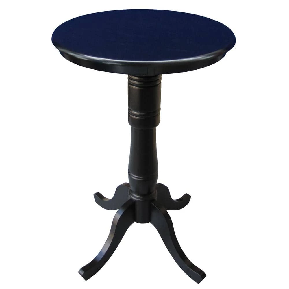 This classic pedestal tables is bar height and goes with 30 in. high barstools. Two 6 in. pedestals extenders give you the choice of three heights. Great for kitchens or game rooms! Crafted from solid wood for long lasting durability.