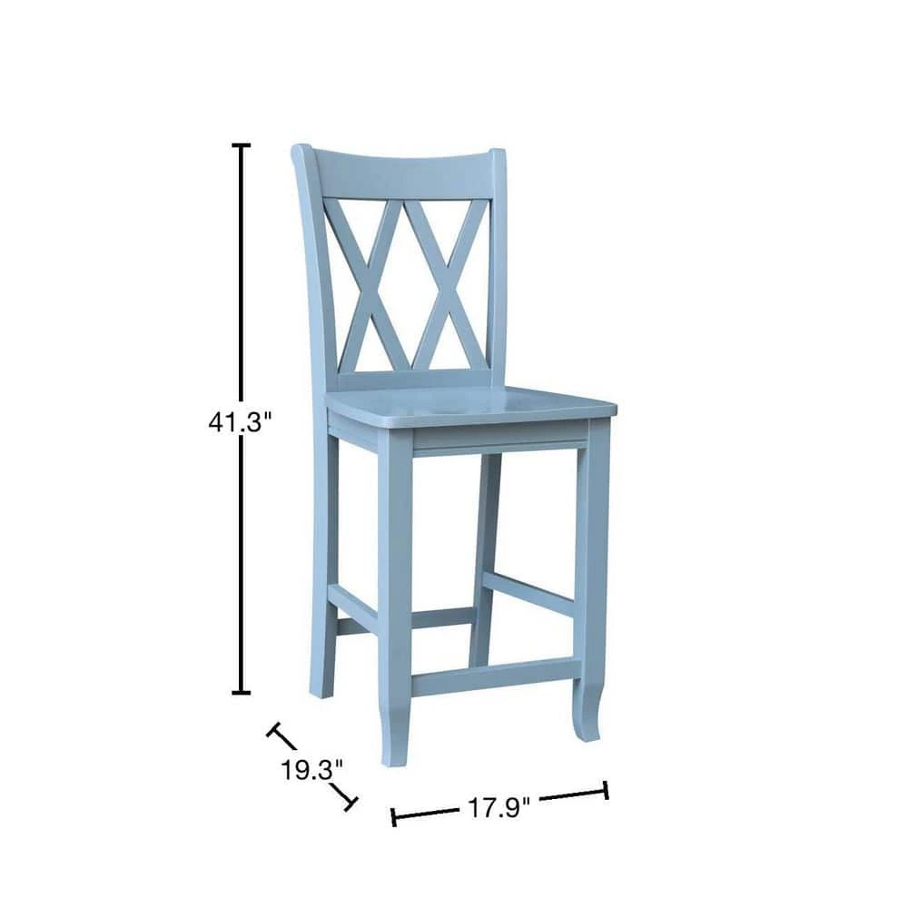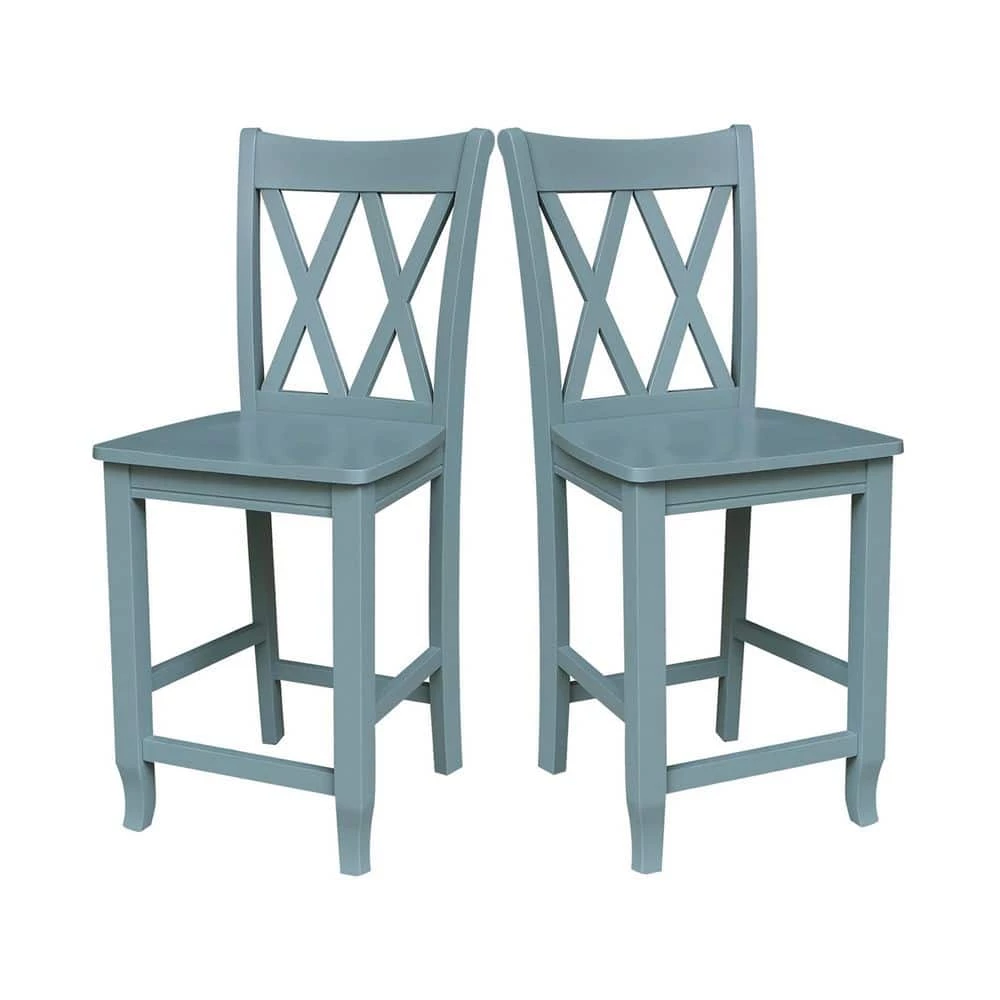 Beautifully painted smoke gray to match and accent your countertops. The double x design is the most popular choice and goes with most styles from contemporary to modern farmhouse. Constructed of solid wood and crafted for durability. H stretchers will keep the legs from getting wobbly over time. Don’t wait. Get these counter stools today.