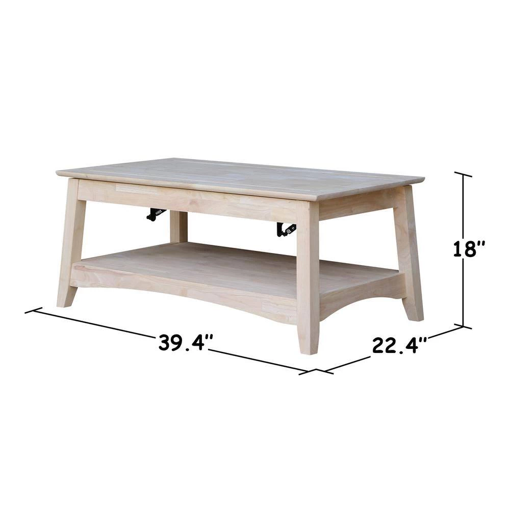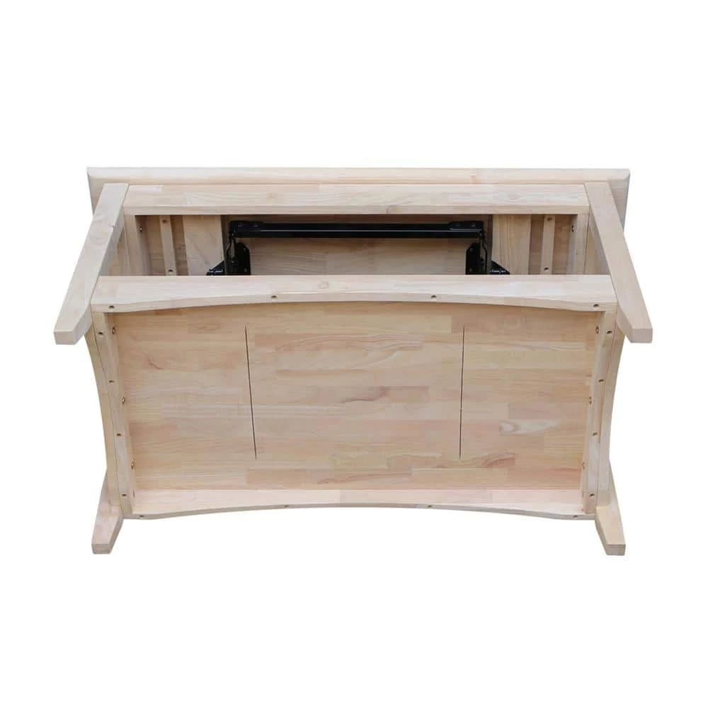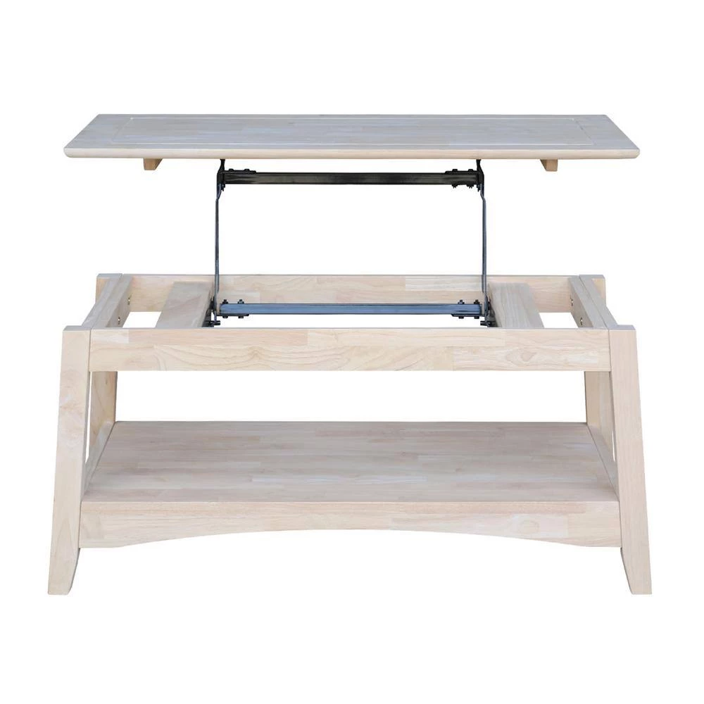 You won’t regret adding this coffee table with lift top. This coffee table turns into a dining table or work surface. This unfinished furniture is ready to finish; simply apply a clear coat, stain or paint your favorite color. Constructed from eco-friendly parawood so it is a beautiful and durable solid wood piece.