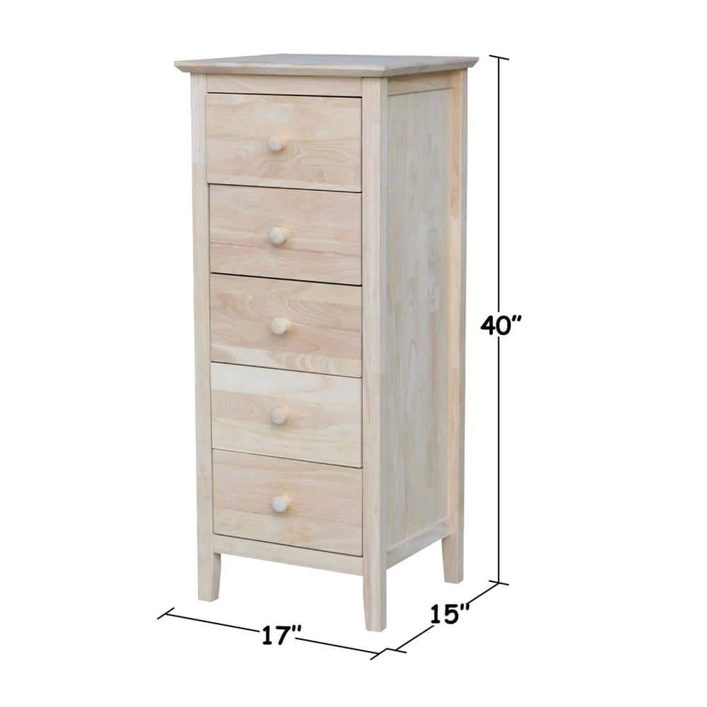Part of our Brooklyn Bedroom Collection, this Shaker style Lingerie Chest is crafted from solid hardwood. This solid parawood is left unfinished so you can choose your own stain or paint. The drawers feature solid sides and euro glide guides. You won’t find a better value than this collection from International Concepts. This item is ready to assemble.