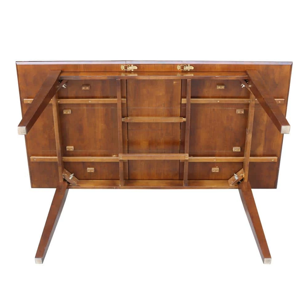 - Butterfly leaf stores inside table