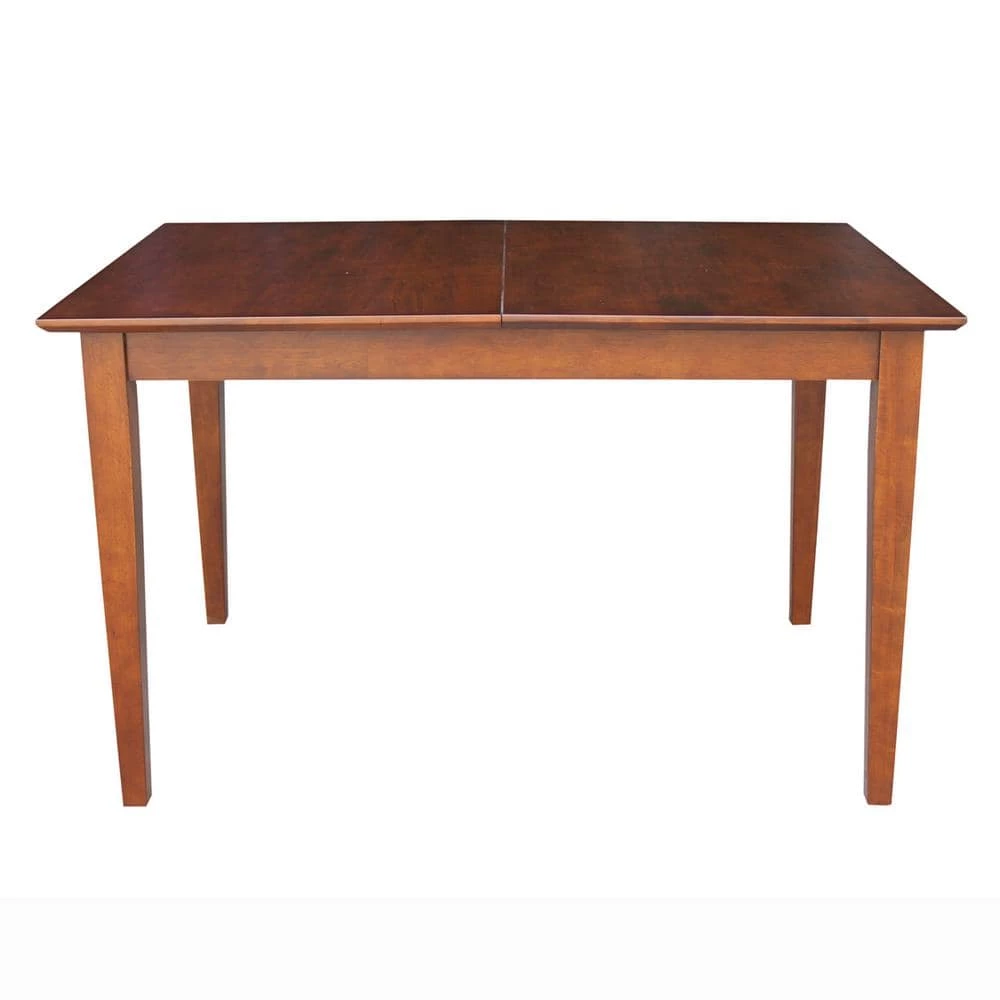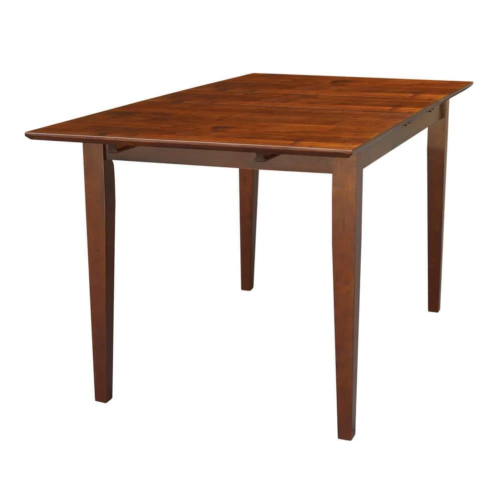 This shaker table is the perfect dining table for small spaces. The butterfly leaf self stores inside the table when not in use. With the leaf up you can seat six people. The top features a butcher block look; crafted from solid rubberwood. This table is available in a variety of finishes and pairs with international concepts chairs.