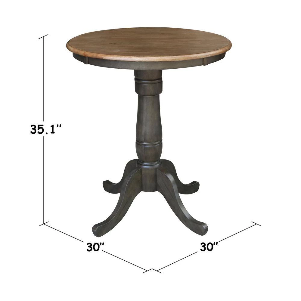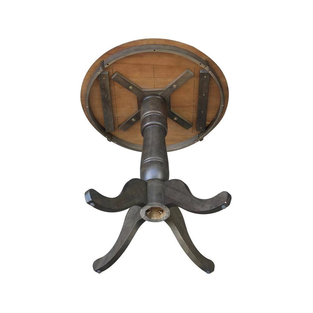 This solid wood 3-piece Hickory/Coal dining table set from International Concepts is perfect for small spaces whether it be a kitchen or a studio apartment. International Concepts has been crafting fine solid wood home furnishings since 1979 and stands behind their products. Most tables today are made from particle board and break easily. All International Concepts products are 100% solid hardwood, beautiful and built to last.