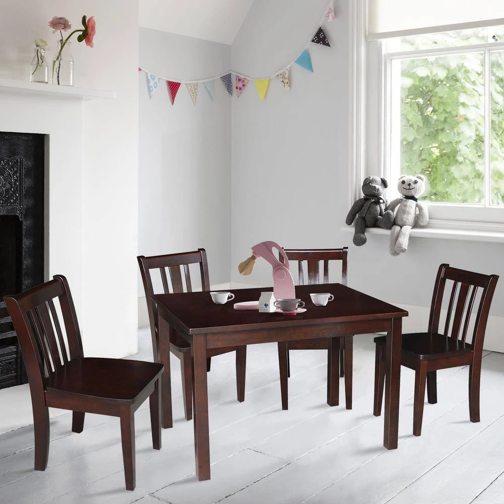 This child’s table and chair set provides the perfect place for your little ones to eat, play and create. Crafted from 100% solid hardwoods for timeless durability. Currently offered ready to finish or in two pre-finished color choices. Unfinished option allows you to choose your own color to paint and personalize.
