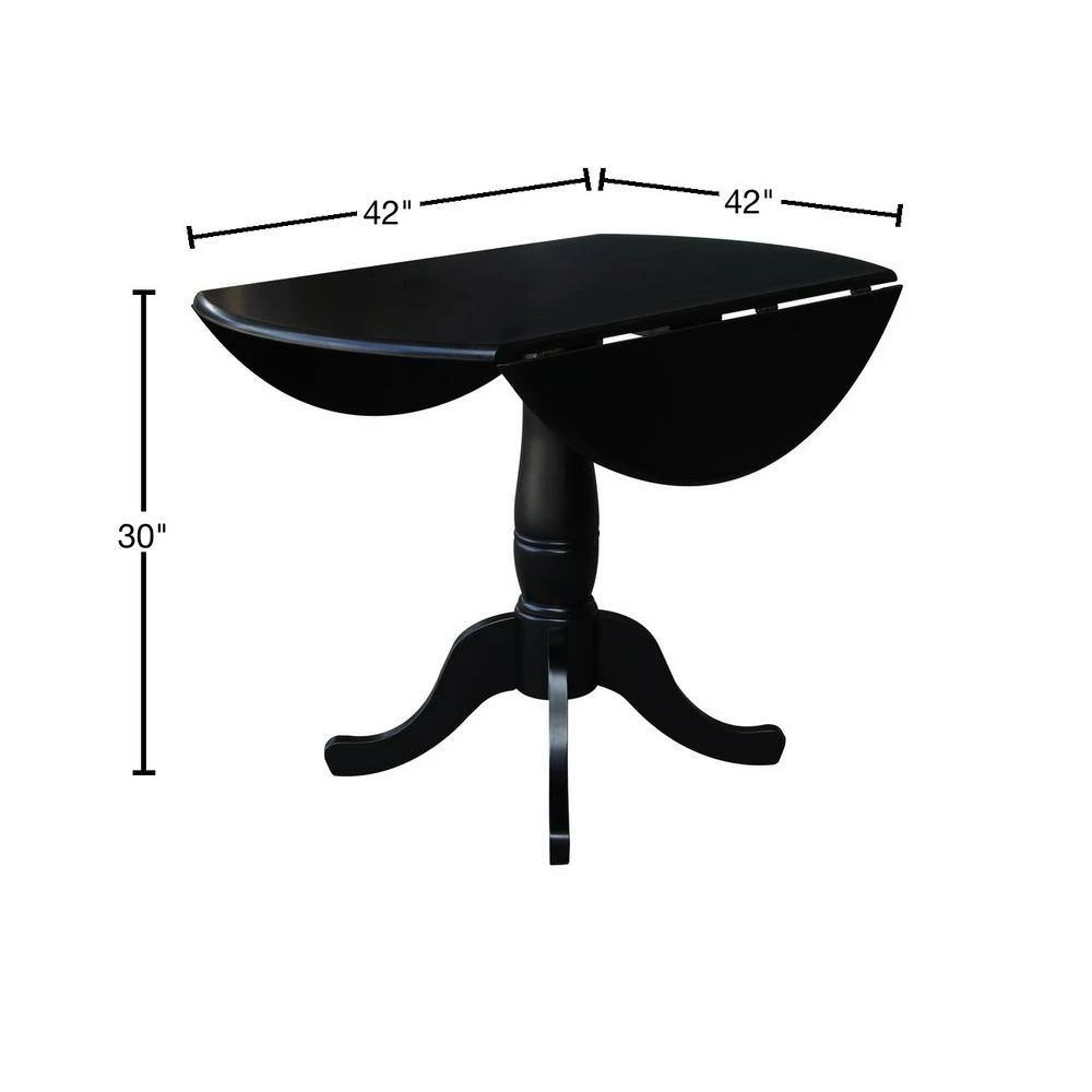 International Concepts has been crafting fine solid wood furniture for 40 years. We believe in bringing quality, value and style to your home. Creating pieces with long lasting construction and style. This drop-leaf table combines style and function; 42″ round with the leaves up just 24″ wide with leaves down. Always 100% solid hardwood; a table you will be proud to own for many, many years.