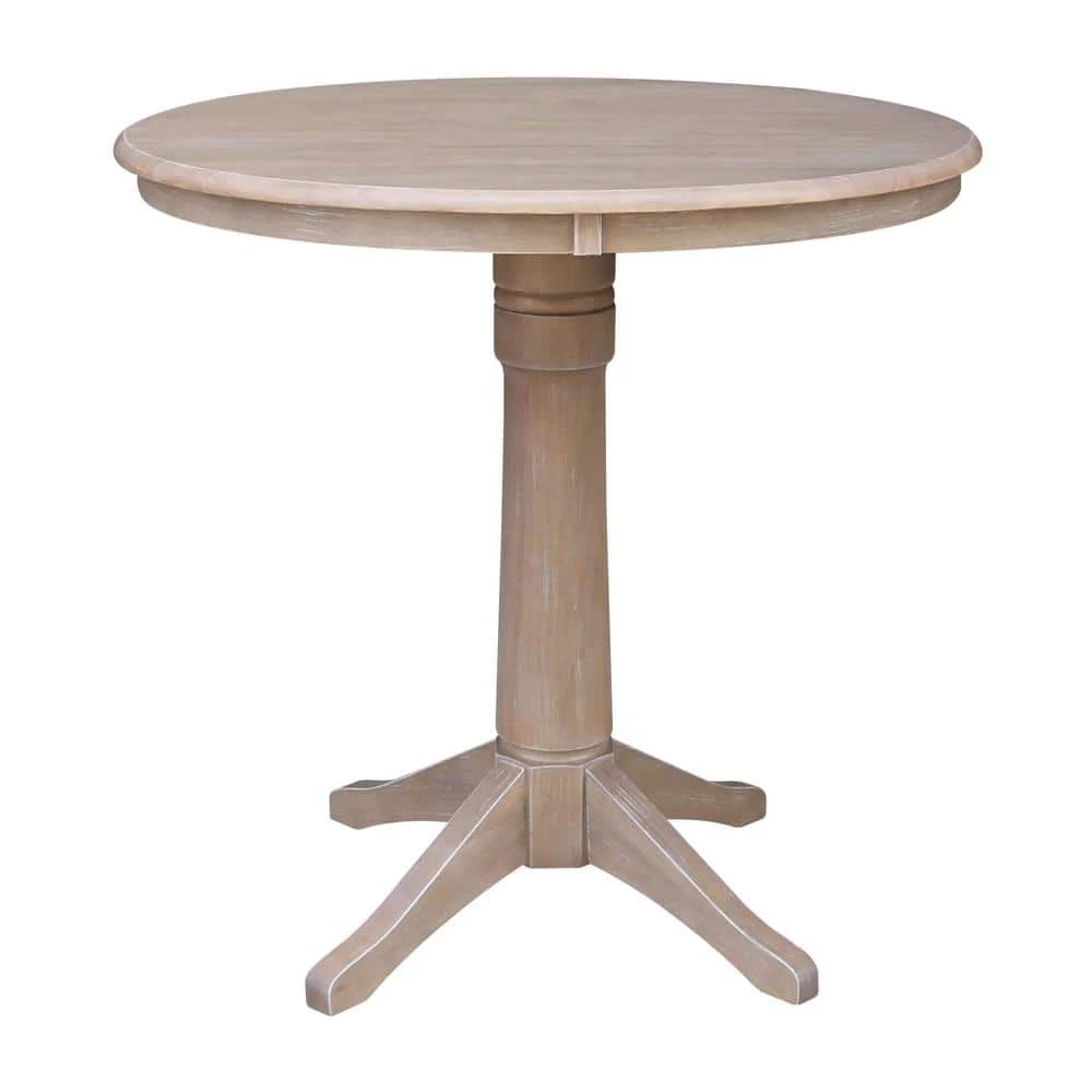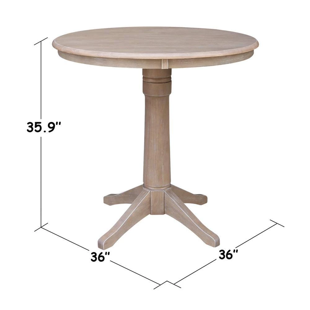 The Olivia pedestal with a 36 in. solid wood top is the perfect counter-height table for your needs. Crafted from solid hardwood and available in a variety of premium finishes or ready to finish. Look for International Concepts variety of coordinating stools. This table is built to last with the quality, value and style International Concepts is known for.