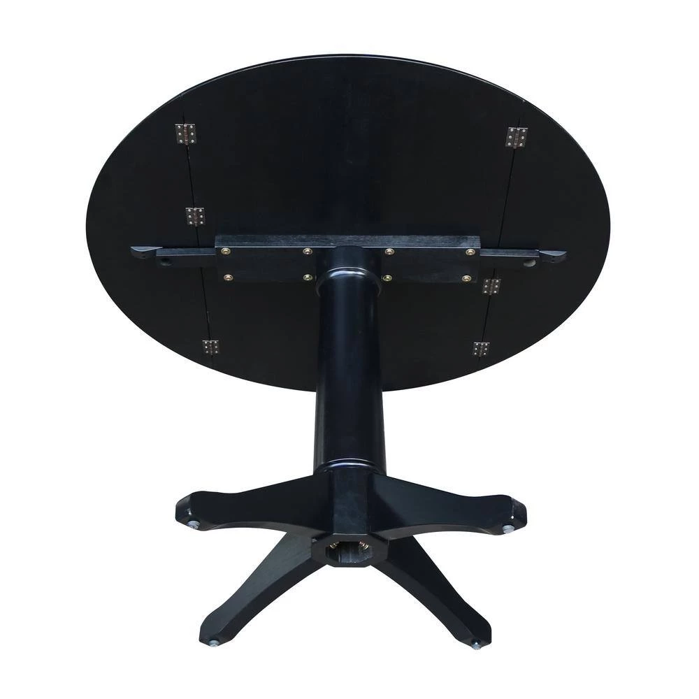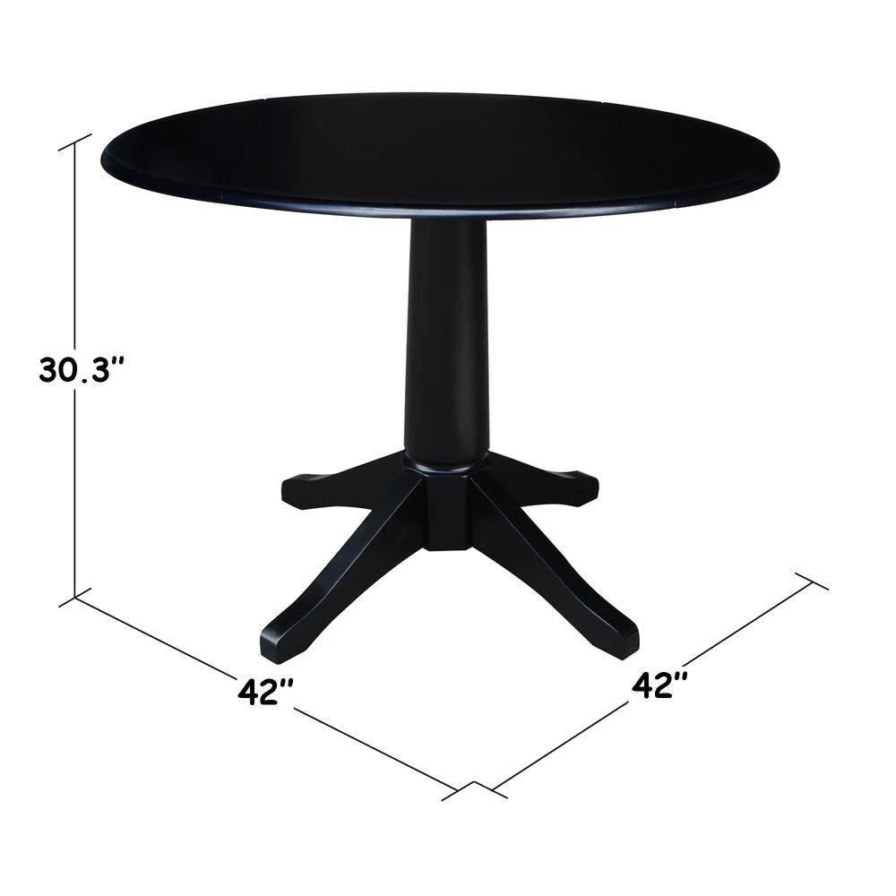 International Concepts has been crafting fine solid wood furniture for 40 years. We believe in bringing quality, value and style to your home. Creating pieces with long lasting construction and style. This drop-leaf table combines style and function; 42″ round with the leaves up just 24″ wide with leaves down. Always 100% solid hardwood; a table you will be proud to own for many, many years.