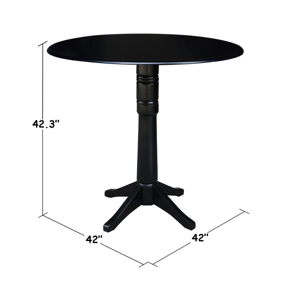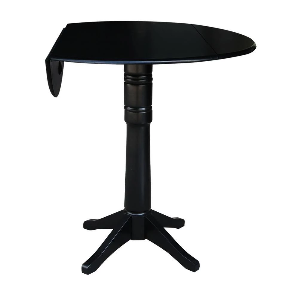 International Concepts has been crafting fine solid wood furniture for 40 years. We believe in bringing quality, value and style to your home. Creating pieces with long lasting construction and style. This drop-leaf table combines style and function; 42″ round with the leaves up just 24″ wide with leaves down. Always 100% solid hardwood; a table you will be proud to own for many, many years.