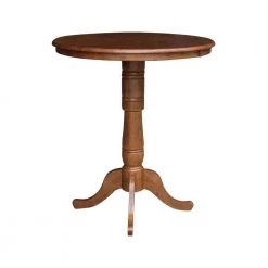 36 in. Bourbon Oak Round Pedestal Bar Height Dining Table by International Concepts