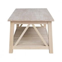 Tuscan 56 in. Unfinished Large Rectangle Wood Coffee Table with Shelf by International Concepts