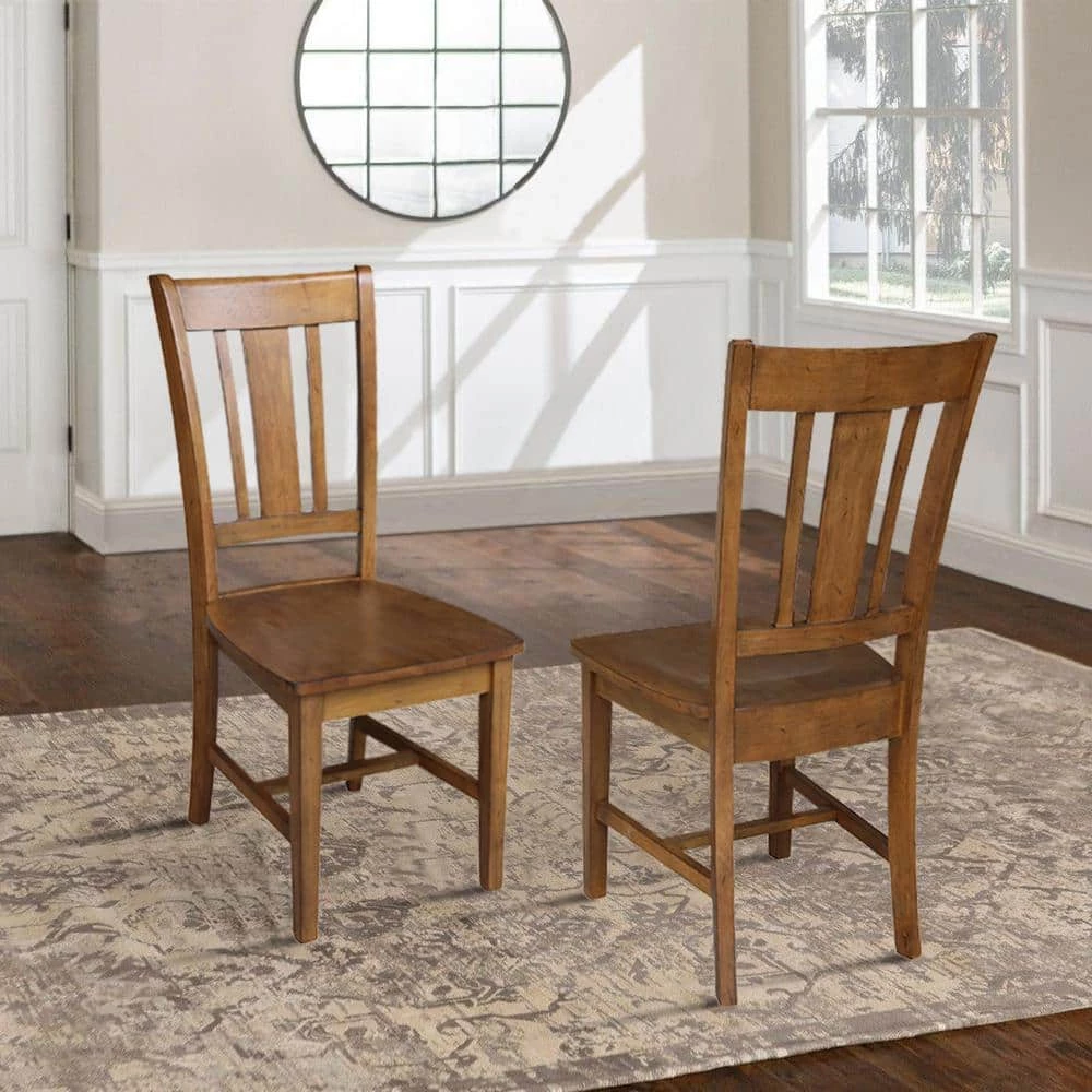 These International Concepts San Remo Splat-back Wood Dining Chairs provide a clean and contemporary update on a traditional slat-back structure. The rich finish and sleek modern design will suit a wide variety of decorating styles. These International Concepts dining chairs sport box seats and solid wood construction for durability and comfort.