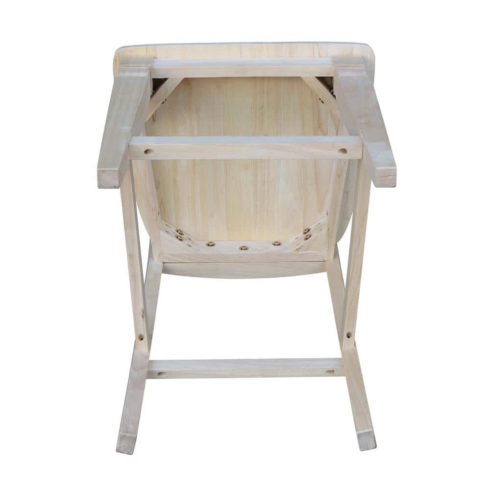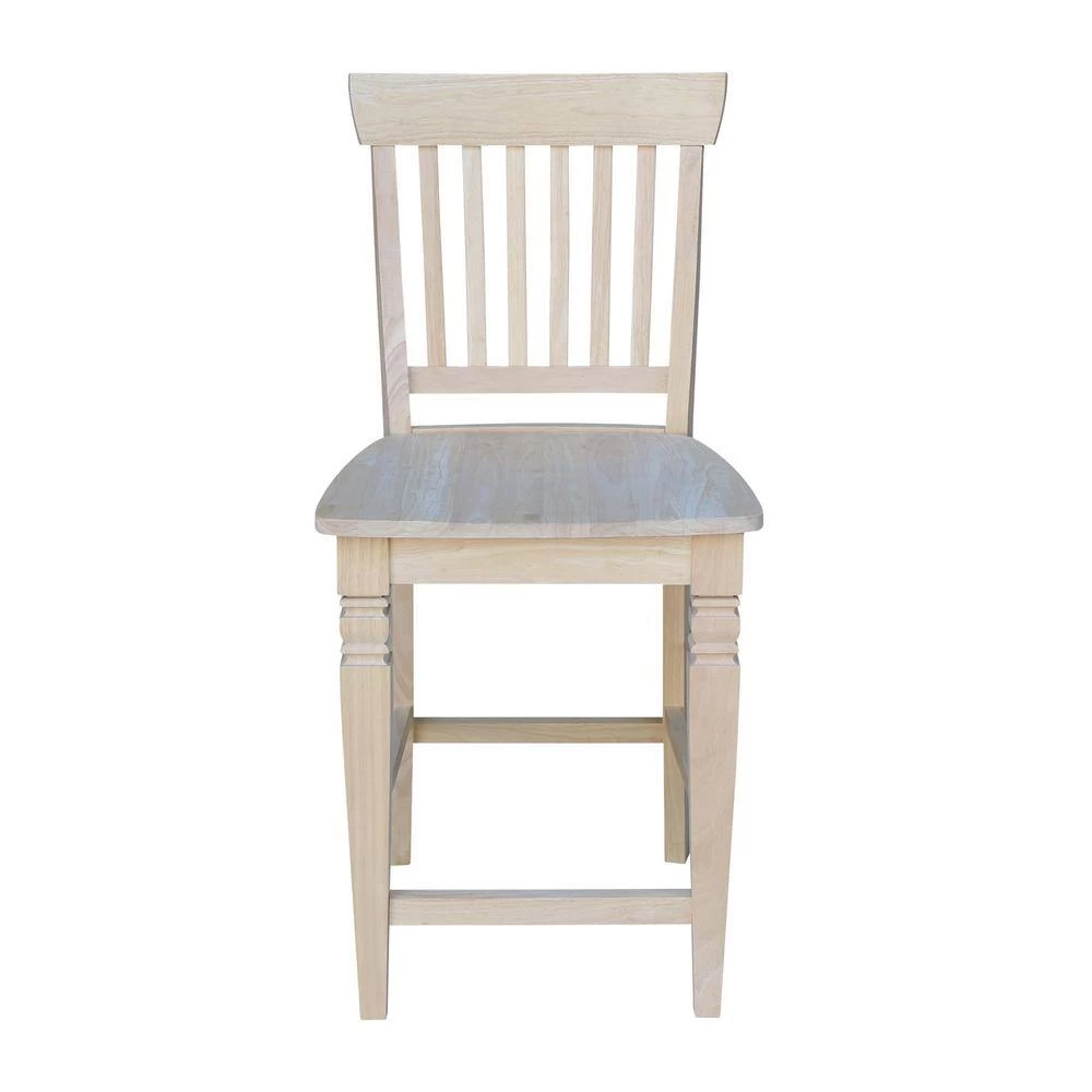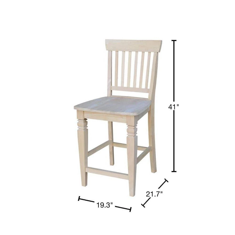 Complement your kitchen design with the International Concepts Dining Essentials Bar Stool. This stool has a full back, which provides a lot of support, so you can sit comfortably for a long amount of time. It is designed without arms, so you can push it under the counter or bar. It has a classic style for a look that will pair well with your counter space. Made from wood, it is great for adding a more unique and old-time feel to any home. This stool features a foot rest, ensuring a more ergonomic design and promoting good alignment. It is eco-friendly for smarter living. Easy to assemble, this bar stool will be ready for use without any hassle.