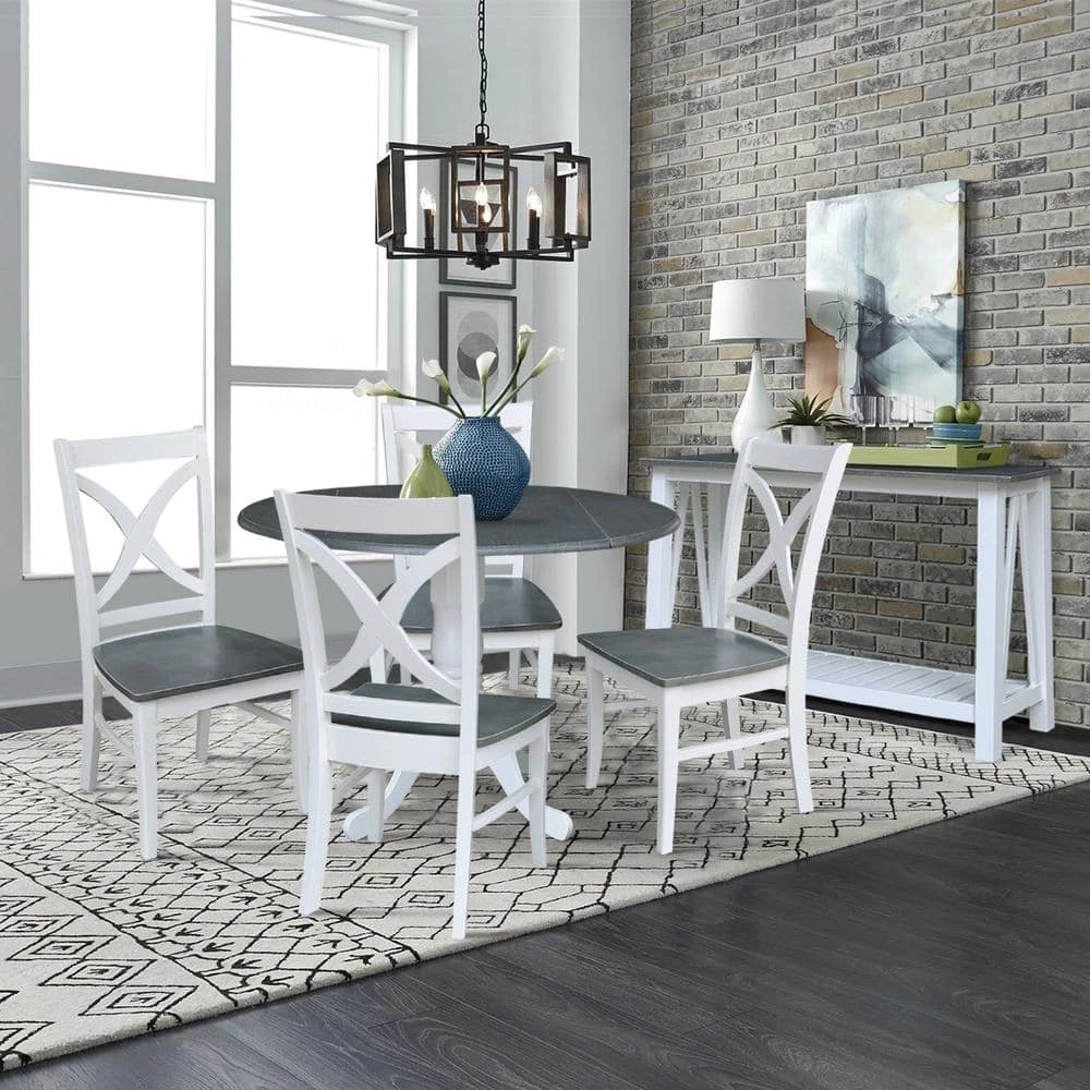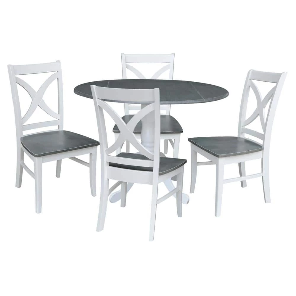 - 5 pc White/Heather gray set, consisting of 1 table and 4 RTA chairs, packed and shipped in 3 cartons