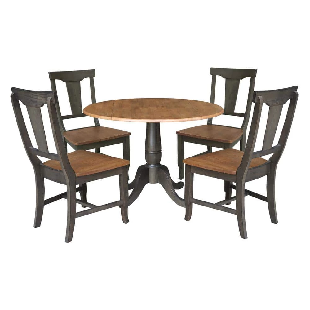 This beautiful solid wood 5-piece set in Hickory/Washed Coal from International Concepts is a great addition to your home. Always 100% solid hardwood, IC products are sturdy, durable and a great value. International Concepts has been manufacturing quality solid wood home furnishings since 1979. With 30 plus years of experience they stand behind their products. Buy this beautiful furniture today.