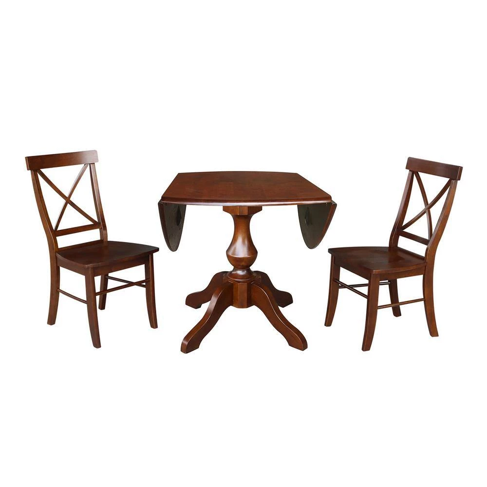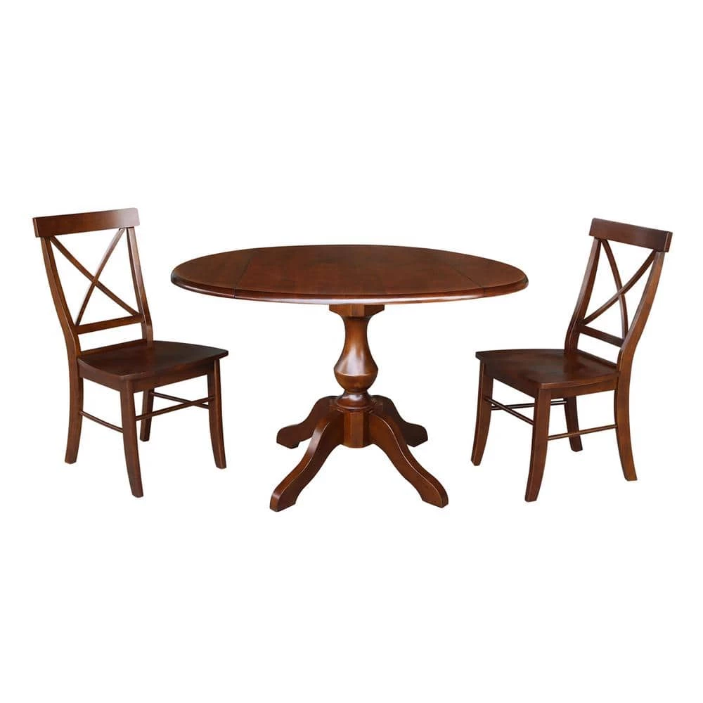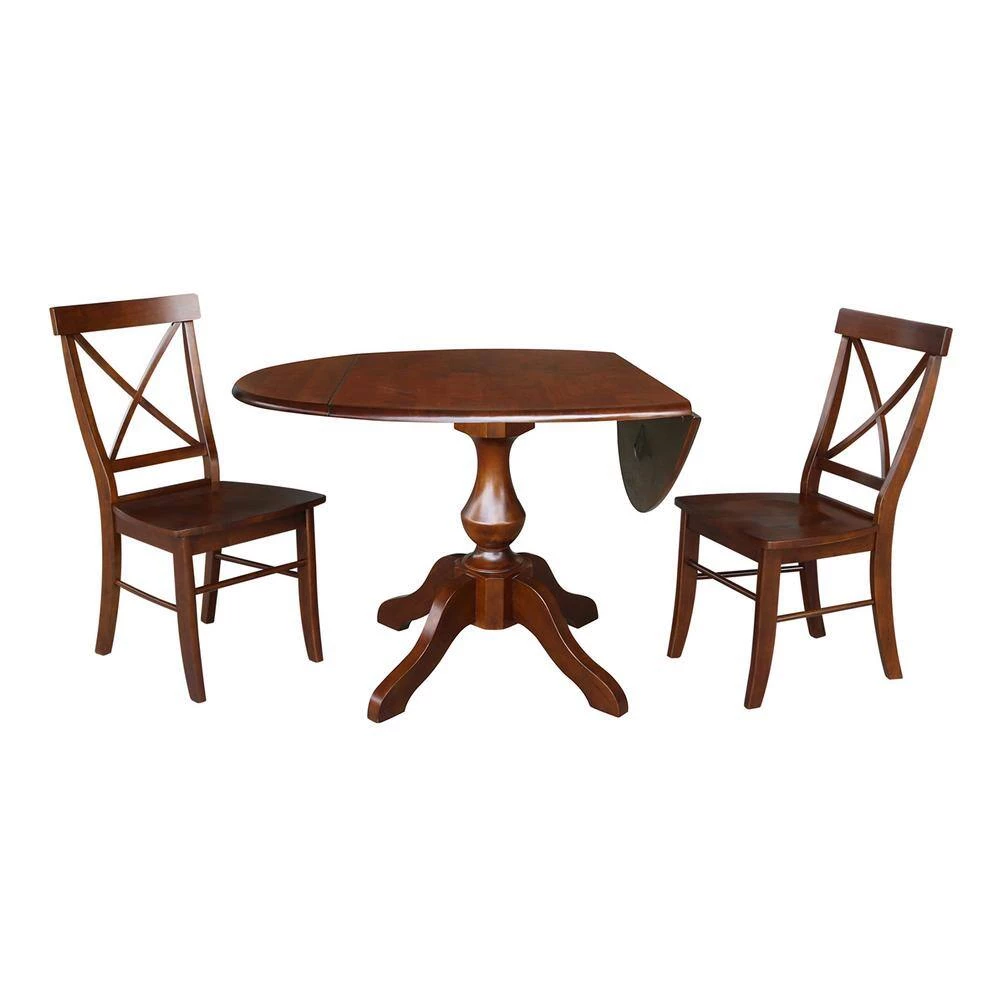 Sophia 3-Piece Espresso 42 in. Dropleaf Table and Alexa Side Chair Dining Set by International Concepts