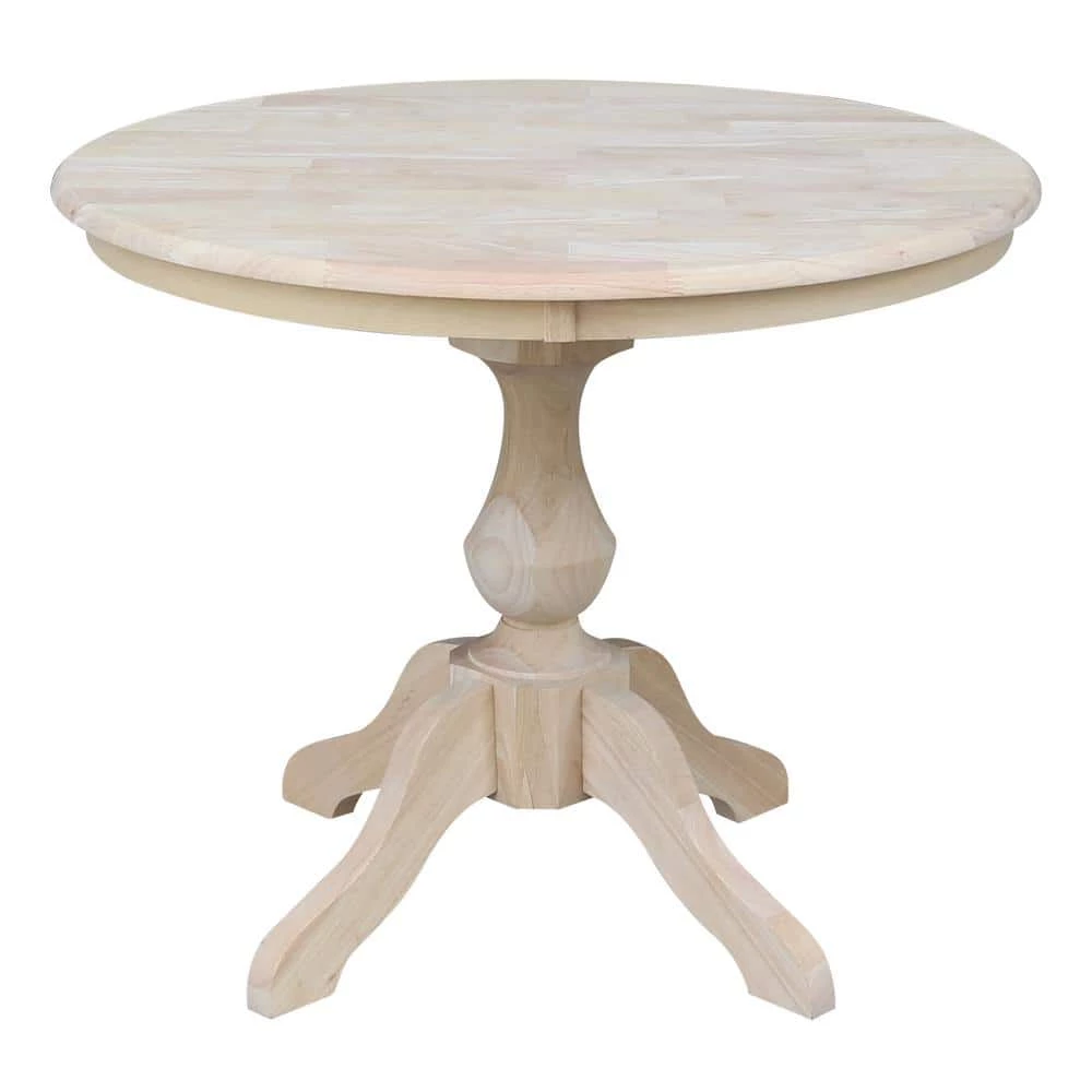 The Sophia pedestal with a 36 in. solid wood top is the perfect table for your needs. Crafted from solid hardwood and available in a variety of premium finishes or ready to finish. Look for International Concepts variety of coordinating dining chairs. This table is built to last with the quality, value and style International Concepts is known for.