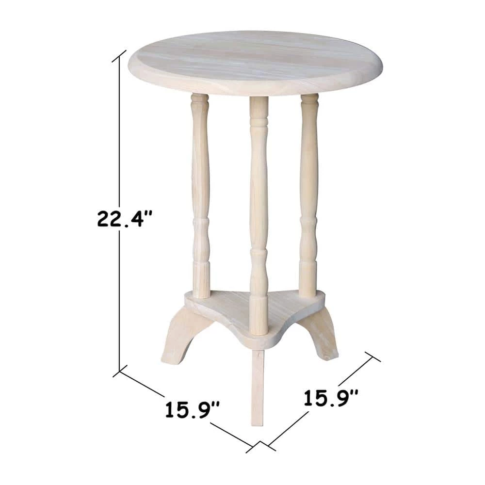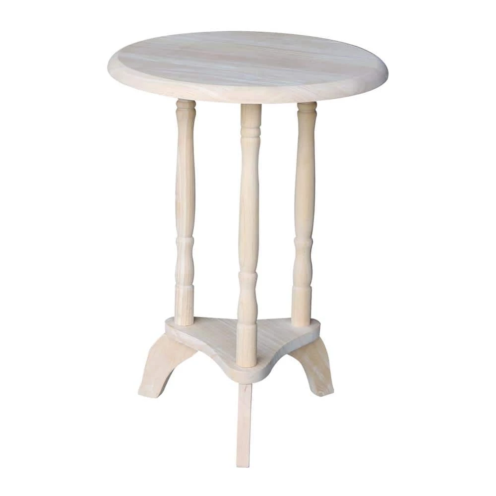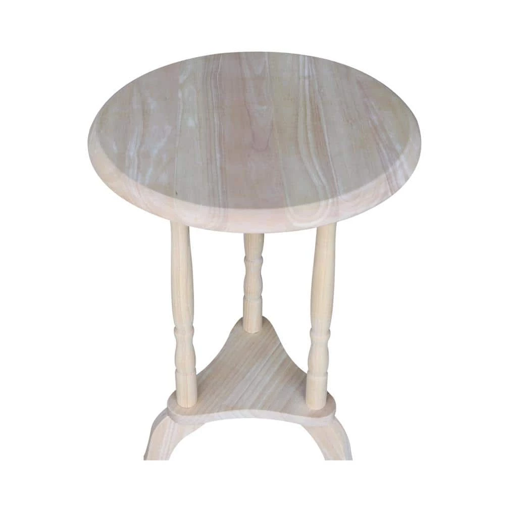 This is a great little accent table made from solid wood. It could be a plant stand or an end table. It will be handy in any room. It comes ready to finish so you can stain it to bring out the natural beauty of the solid wood. Or, you can paint it your favorite color.