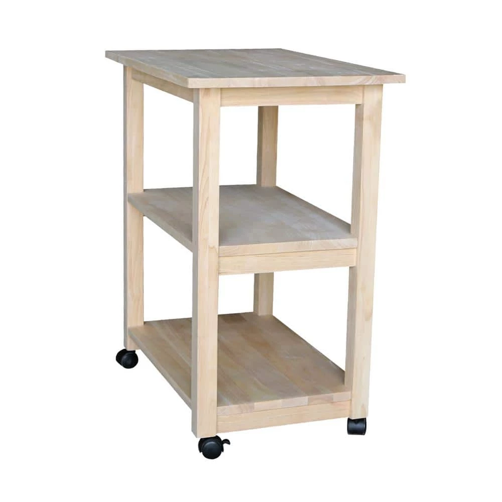 You won’t regret adding this unfinished Kitchen Work Cart. Extra storage that goes where you need it. This unfinished furniture is ready to finish; simply apply a clear coat, stain or paint your favorite color. Constructed from eco-friendly parawood so it is a beautiful and durable solid wood piece.
