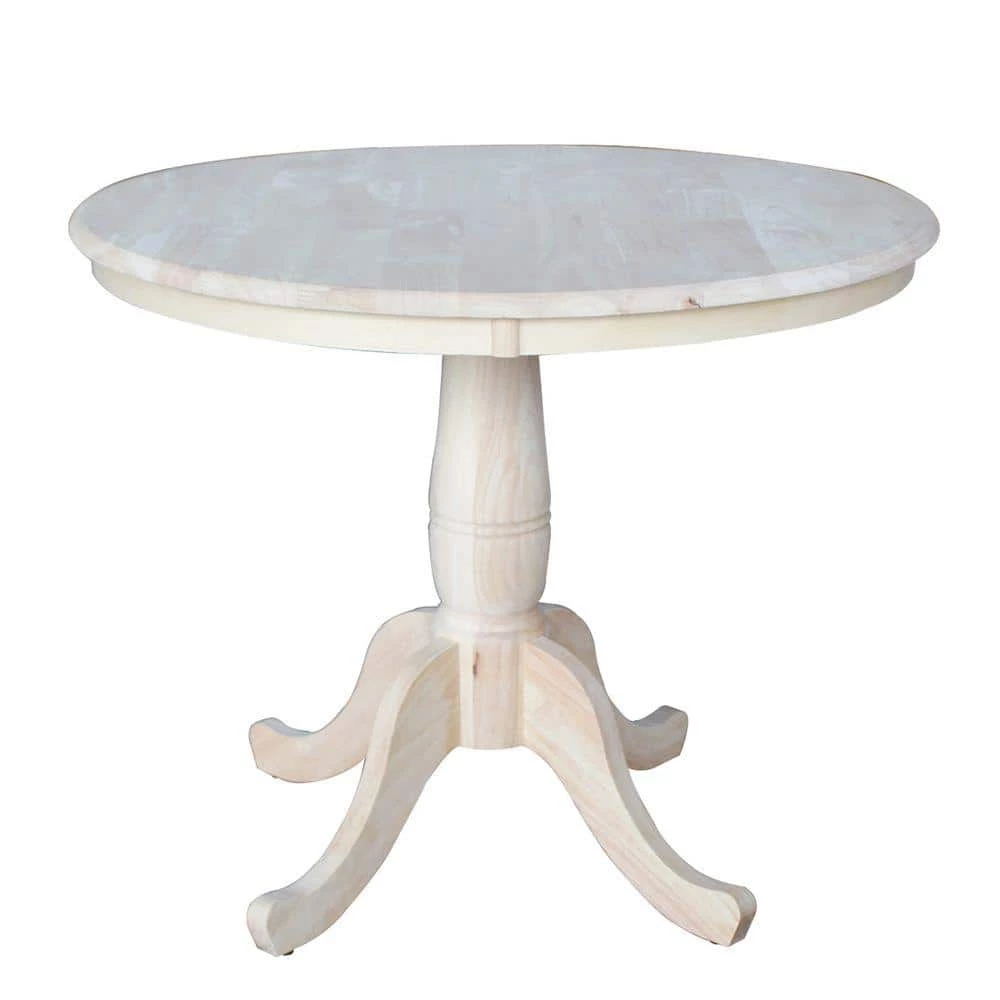 This solid wood 36 in. round top pedestal table is the perfect dining table for those that want a choice of their finish. Solid wood furniture will last for generations and finishing it yourself will make it extra special. Look for our International Concepts unfinished dining chairs to pair with this beautiful table.