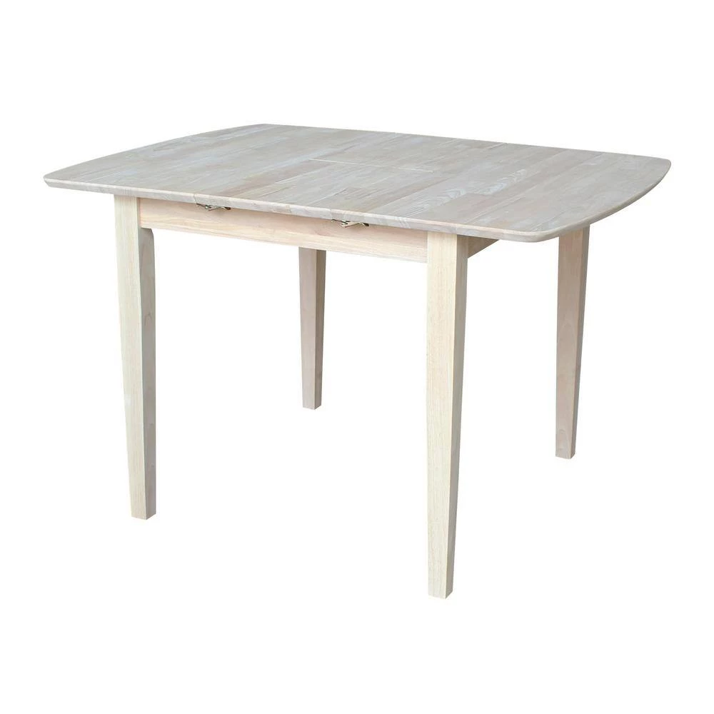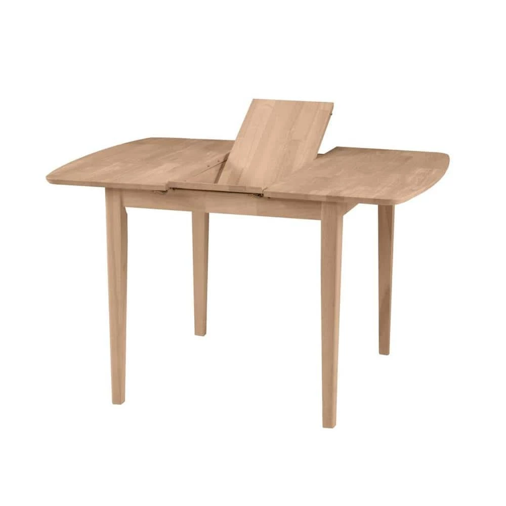 This butterfly leaf shaker table is perfect for small dining areas. It is a 36 in. square table without the leaf and a 36 in. x 48 in. table with the leaf. The clean lines of the shaker legs fit in with any decor. The table is ready to finish so you can match to any finish or paint it to make a statement with your favorite color.