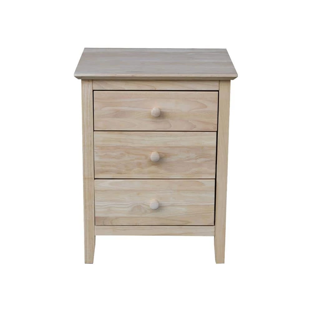 This 3-drawer nightstand is a great value and will add warmth and charm to your bedroom. 100% solid hardwood makes for a sturdy and durable nightstand that will last. Finish any color you desire. If you are looking for extra storage this is nightstand for you. International Concepts has been manufacturing solid wood home furnishings since 1982 and knows how to deliver quality and value.