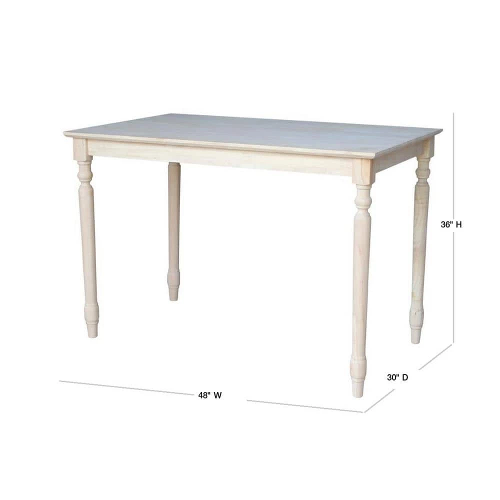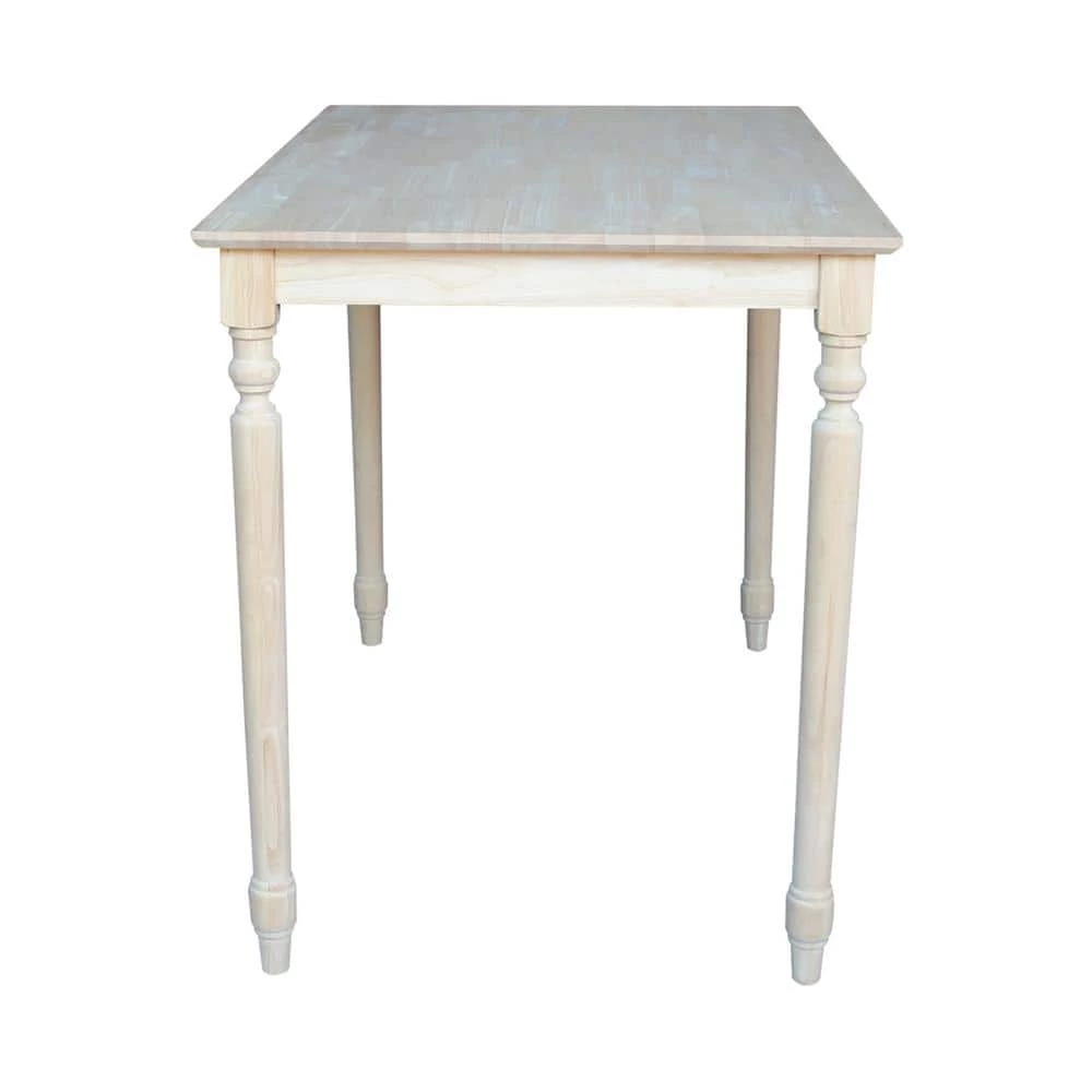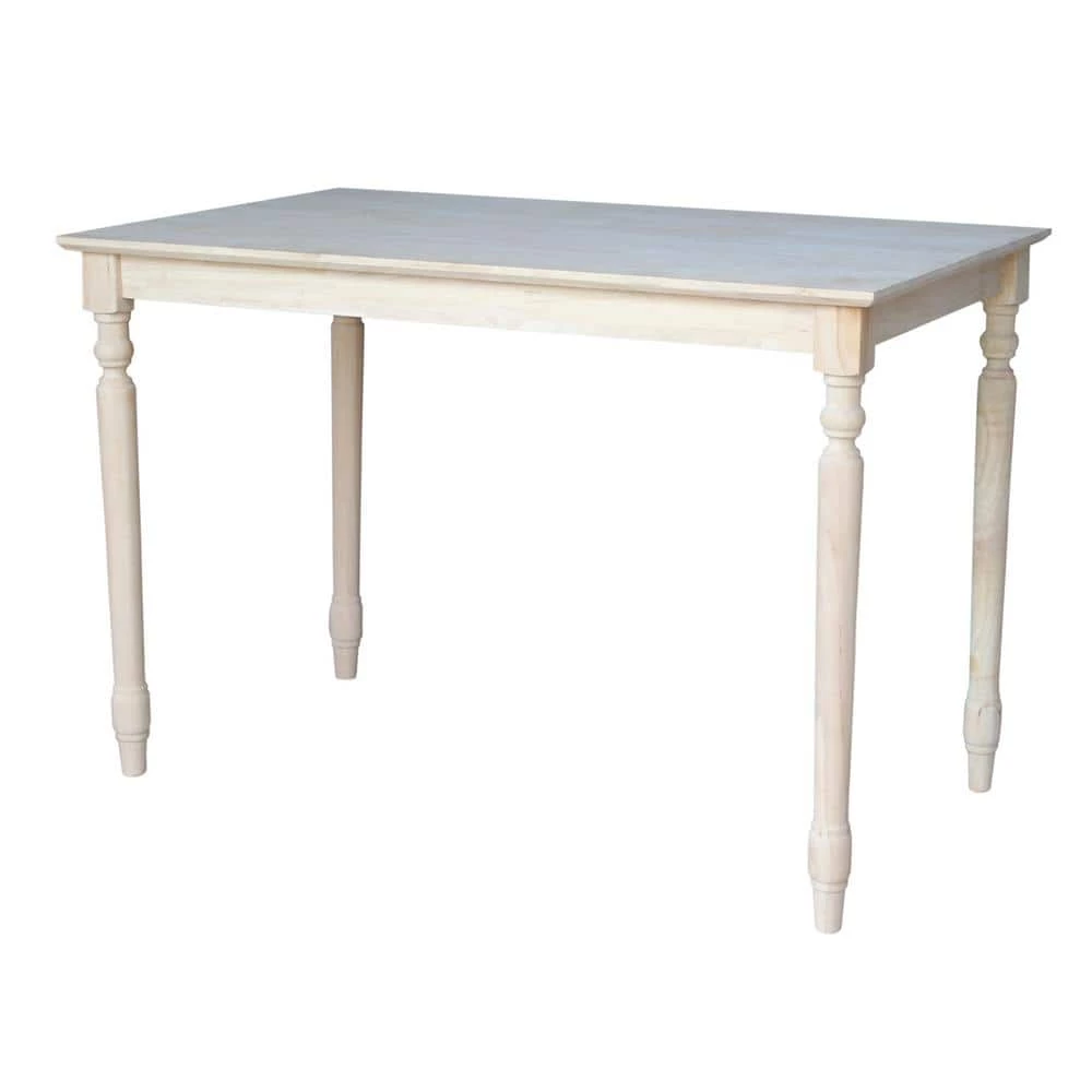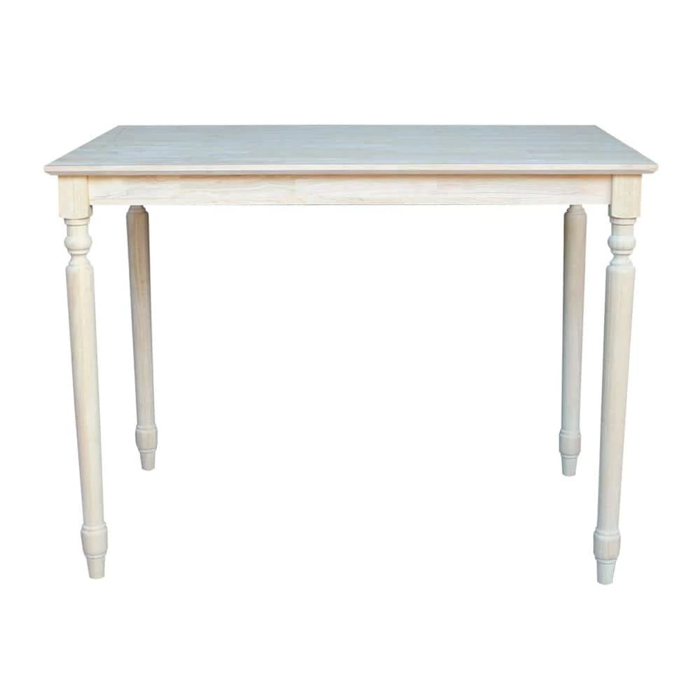 This turned leg table in counter height is great for kitchens or family rooms to create extra dining, work or game space. The extra height is great when you are prepping dinner while trying to help the kids with their homework. Solid wood made to last. Buy unfinished and create a unique dining table for your family to enjoy for years to come.