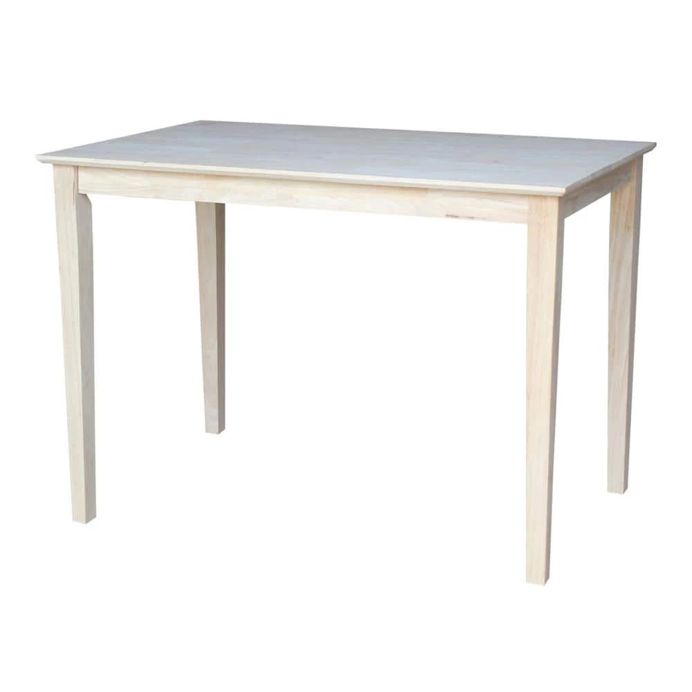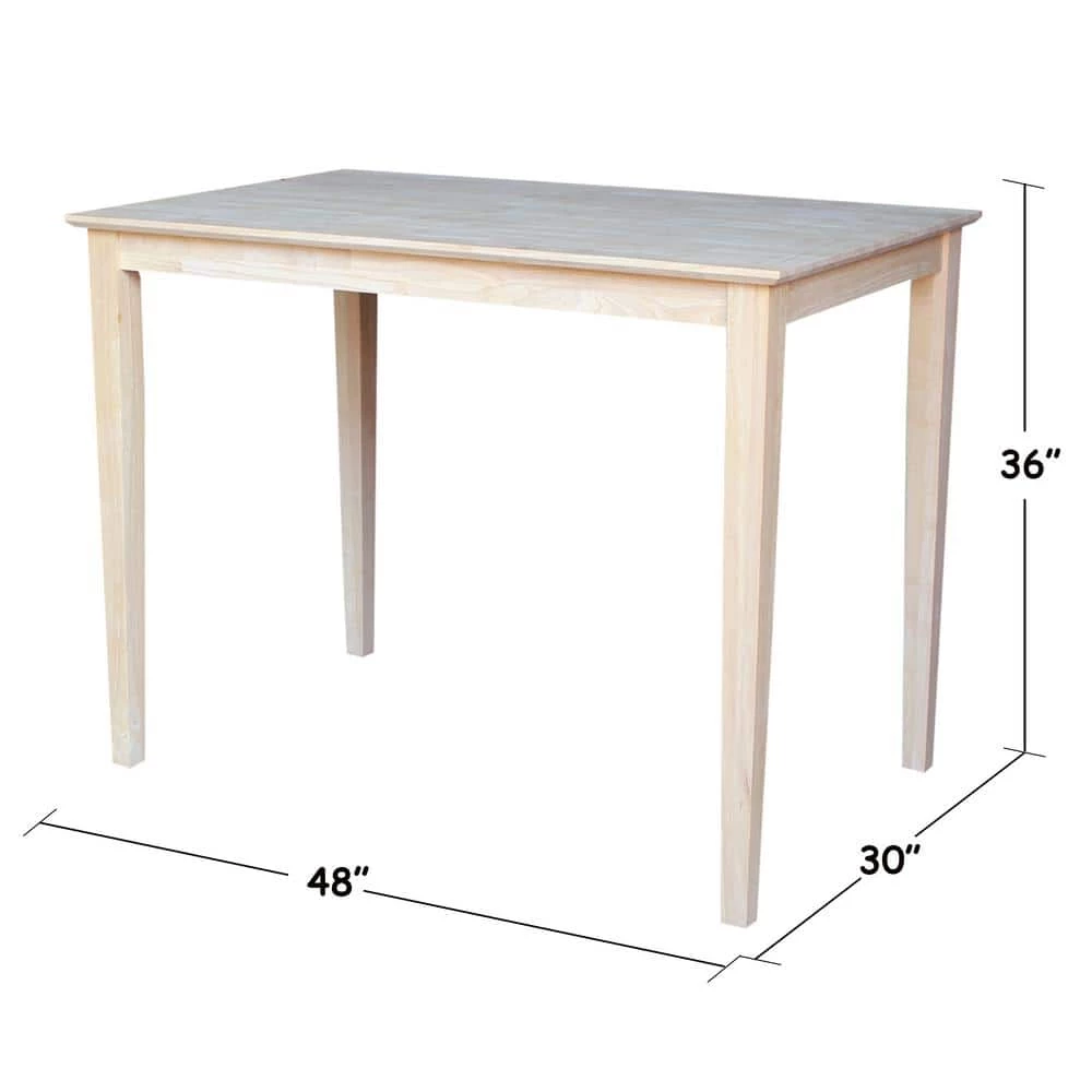 This shaker table in counter height is great for kitchens or family rooms to create extra dining, work or game space. The extra height is great when you are prepping dinner while trying to help the kids with their homework. Solid wood made to last. Buy unfinished and create a unique dining table for your family to enjoy for years to come.