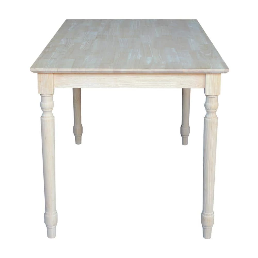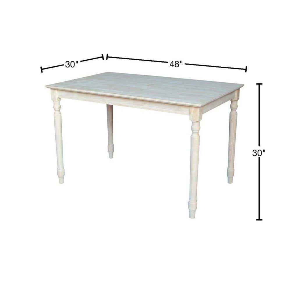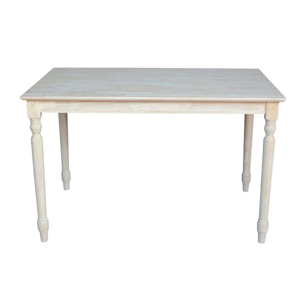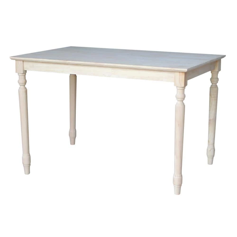 This classic table is great for small spaces. This International Concepts table is offered ready to finish or in five pre-finished color choices. Featuring a solid wood butcher block style top that will hold up to your dining needs.