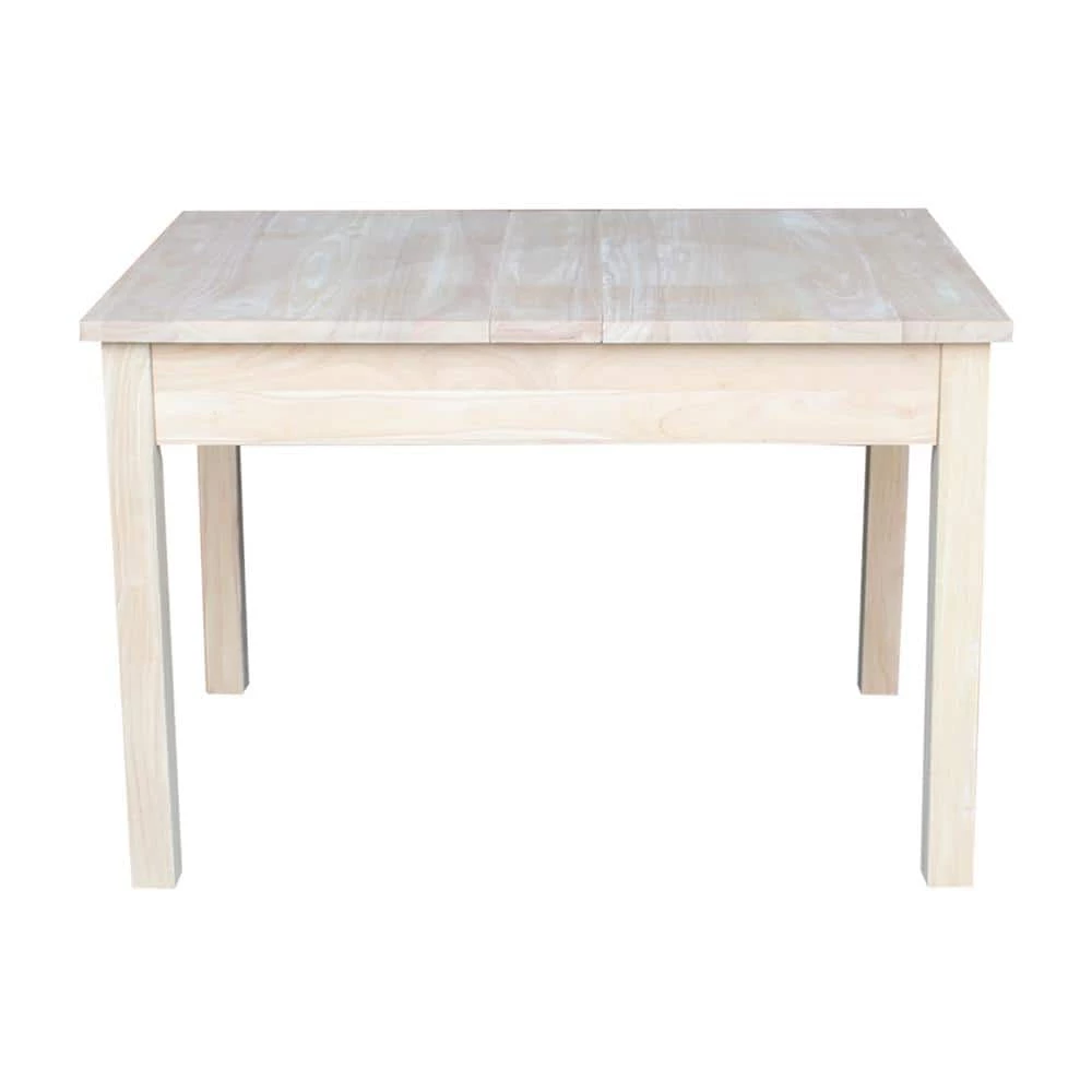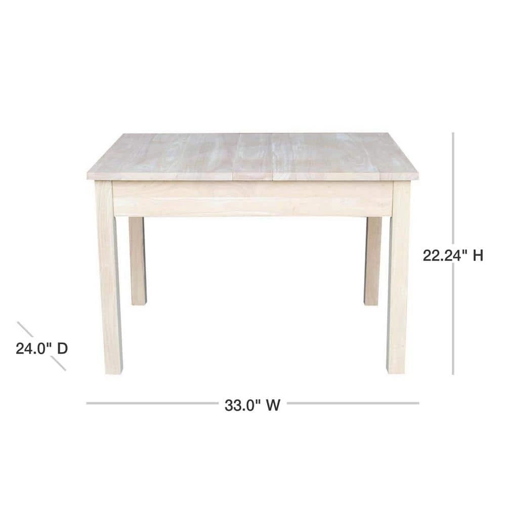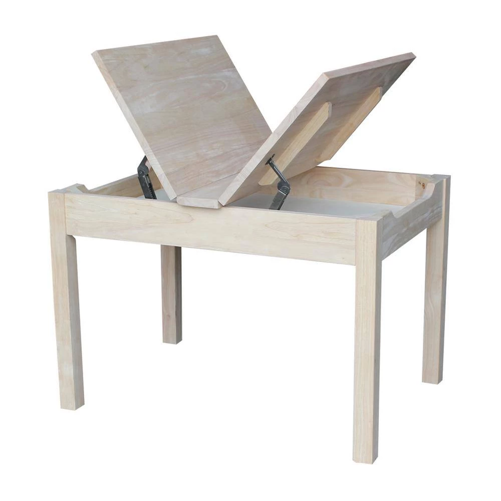 This sturdy solid wood table from International Concepts is the perfect place for your child to play, create, puzzle, and draw. Features a storage area underneath the top to store coloring books and crayons. Crafted from 100% Eco friendly Rubber Wood which is hard as birch and strong as maple. Left unfinished it is ready for you to paint your kid’s favorite color or match your decor.