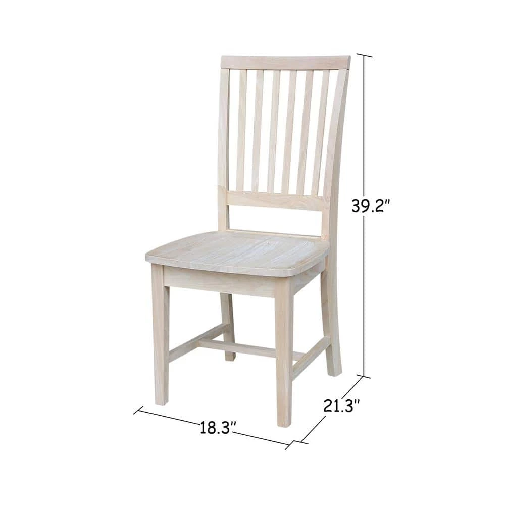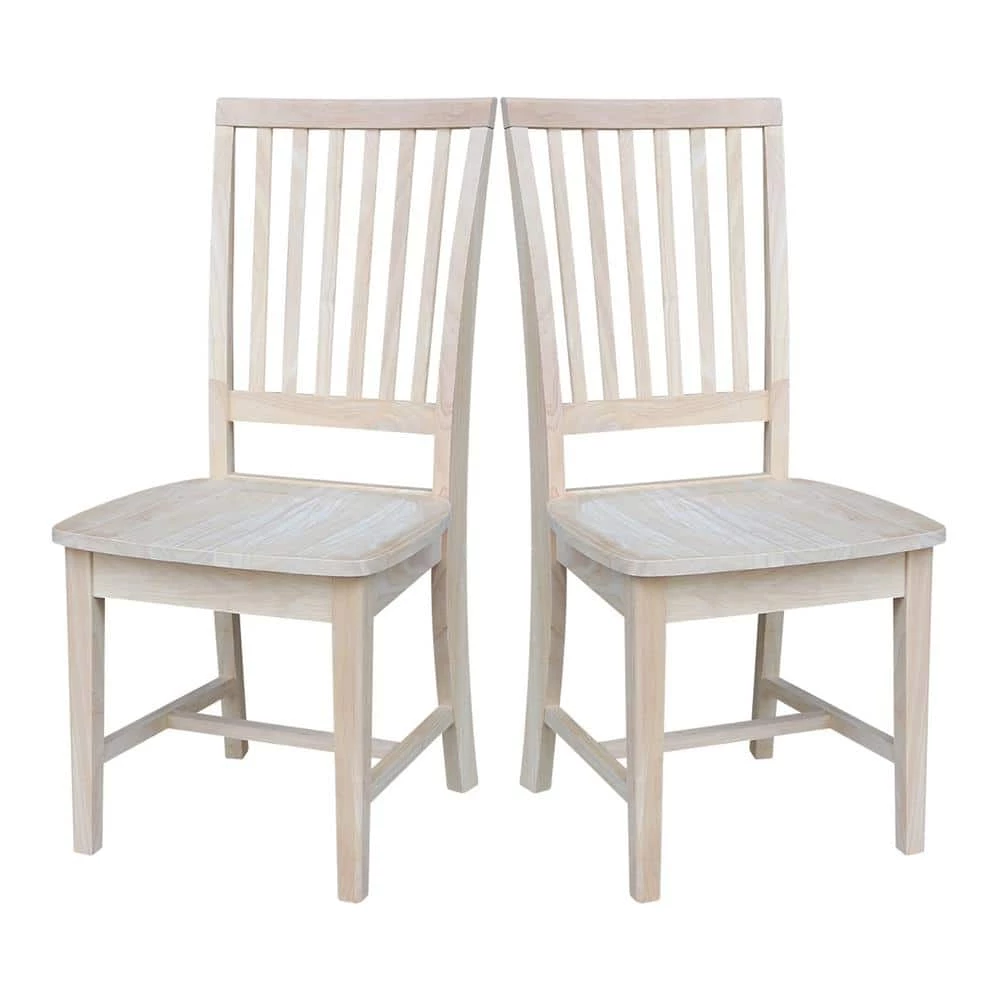 The mission chair imparts a casual elegance that will blend into any decor. This sturdy comfortable chair comes in unfinished so you can stain or paint them to match your existing furnishings. The chairs are made from solid hardwood for lasting durability and strenth.