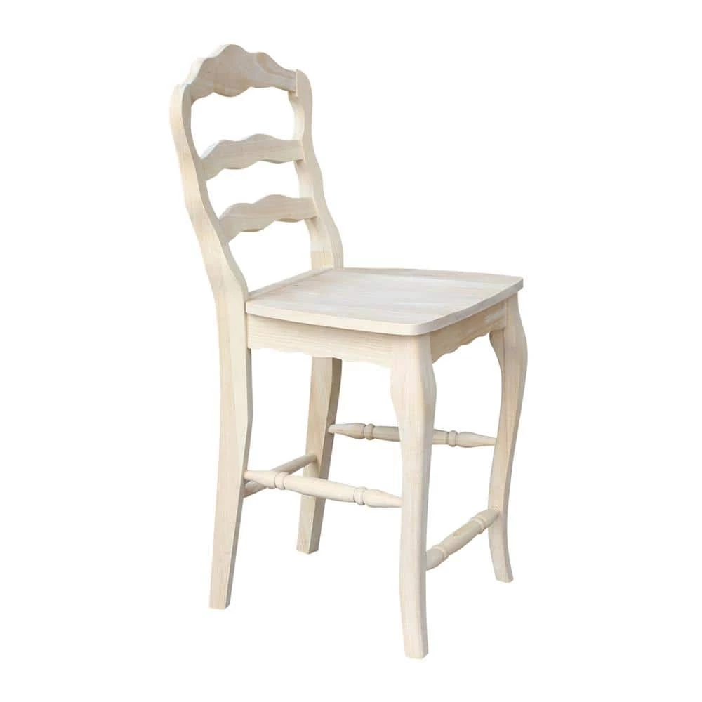 The International Concepts Dining Essentials Bar Stool is a stylish way to seat your guests at your kitchen counter. Featuring a classic style, this bar stool is easy to match with all of your other furniture. It features an armless design, so you can push it under the table or bar. It has a full back, so you can enjoy the comfortable feel of a dining chair yet with the appearance of a stool. With a beautiful wooden design, it will look good in any setting since it has an organic, welcoming feel. This bar stool features a foot rest, which ensures a more ergonomic design and promotes better posture. It is eco-friendly for smarter living. It is easy to assemble for additional convenience.