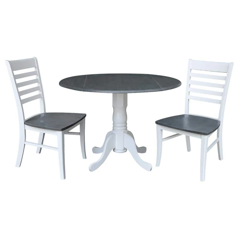 - 3-piece white heather gray set, consisting of 1-table and 2-RTA chairs, packed and shipped in 2-cartons